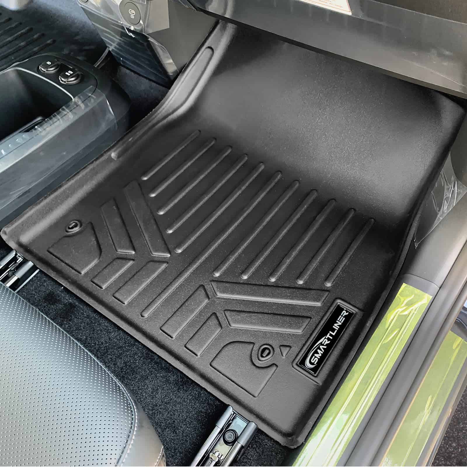Protege y conserva el interior de tu auto con las alfombrillas y forros de piso para automóviles SMARTLINER. Nuestras alfombrillas son fáciles de instalar, duraderas y diseñadas para durar. Esta alfombrilla para piso proporciona cobertura total de la primera fila del vehículo y cuenta con bordes elevados en todo el contorno y esquinas de 90 grados para un ajuste perfecto y garantizar que los desorden se queden en la alfombrilla y no en tu alfombra. Las crestas ayudan a controlar el movimiento de líquidos, polvo y suciedad, mientras que la textura antideslizante brinda mayor agarre. Las paredes laterales fuertes ayudan a prevenir que los bordes de la alfombrilla se enrollen y nos distinguen de nuestros competidores. Hechas de una mezcla de plástico-caucho y polietileno, las alfombrillas SMARTLINER tienen un tacto más suave y similar al caucho que otras alfombrillas para vehículos. Nuestro material flexible facilita el cuidado y la limpieza, simplemente usa un paño húmedo o esponja y jabón suave según sea necesario para manchas pegajosas. SMARTLINER ofrece una extensa línea de alfombrillas de calidad, forros de carga y tapetes para cama de camión para una amplia gama de marcas y modelos de vehículos. Fabricamos y diseñamos nuestras alfombrillas utilizando una tecnología precisa e innovadora de escaneo 3D para garantizar que nuestras alfombrillas se ajusten perfectamente a tu vehículo. Con protección todo clima, nuestras alfombrillas ofrecen un diseño moderno y elegante para tu vehículo. No importa la configuración de asientos, pasajeros o consola, ¡te tenemos cubierto!