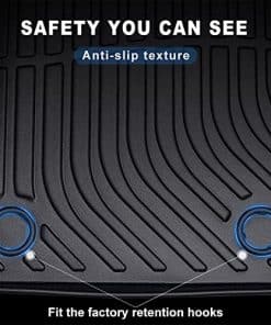 2. Diseño de seguridad: Hechas de material TPE que es inodoro, seguro para el medio ambiente y duradero. Con textura antideslizante y compatible con el sistema de retención de fábrica, permanecen firmemente en su lugar y no obstaculizan los pedales, garantizando una conducción segura.