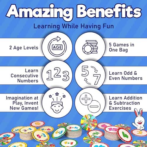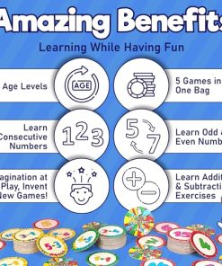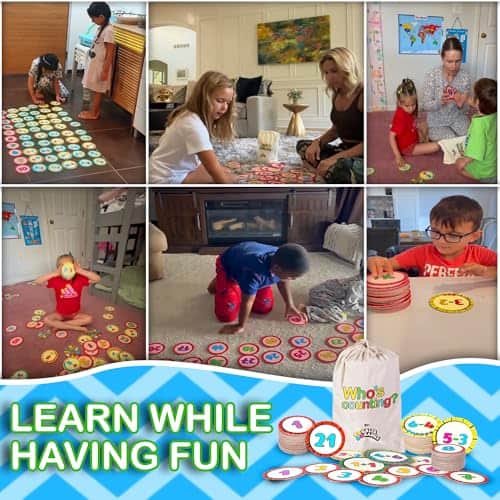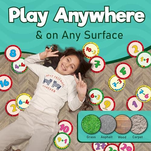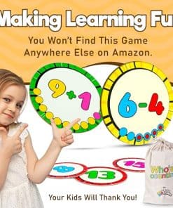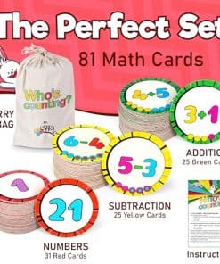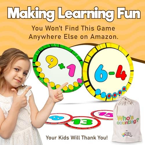 ¿Necesita formas divertidas y enérgicas de enseñar a un niño EL JUEGO DE APRENDIZAJE ACTIVO ¿QUIÉN CUENTA! Aprende matemáticas mientras interactúas físicamente con los números. LO QUE HACE ÚNICO AL APRENDIZAJE ACTIVO CREATIVO Juegos que utilizan 81 discos redondos de matemáticas en el suelo EDUCATIVO Aprende números, suma y resta EDAD OBJETIVO 3 años en adelante VERSÁTIL Contiene más de 7 opciones de juego TAMAÑO GRANDE 4.4 redondo, fácil de leer ALTA CALIDAD Cartón de triple capa, acabado mate DISEÑADOR Contadora/madre Avital Turgeman ECOLÓGICO Libre de BPA y no tóxico BOLSA CON CORDÓN: Con instrucciones, listo para regalar ¡Cada JUEGO DE APRENDIZAJE ACTIVO proporciona horas de diversión enseñando a los niños! 2 NIVELES DE JUEGO: EDADES 3+ – Aprende colores y números EDADES 4+ – Aprende a contar y secuenciar ¡APRENDER DIVIRTIÉNDOSE! NÚMEROS SUMA RESTA PAR/IMPAR DIFERENCIAS DE COLOR OPCIONES DE JUEGO: ~ CONTAR – Alinea 31 cartas en orden consecutivo ~ PAR E IMPAR Organiza las cartas en secuencias ~ SIGUIENTE Encuentra primero la siguiente carta ~ CARA ARRIBA Toma cartas antes o después de un número ~ CARA ABAJO Encuentra cartas que van en orden ~ ENCONTRAR CINCO Sumar y restar para ganar ~ DOBLE ENCONTRAR Encuentra 2 coincidencias matemáticas ~ Crea tus propios juegos matemáticos CONTENIDO: 31 Cartas Numeradas (0-30) 25 Cartas de Suma 25 Cartas de Resta Instrucciones Bolsa de transporte ¡GARANTÍA DE SATISFACCIÓN! ¡SIN RIESGOS! Haz clic en AGREGAR AL CARRITO para el JUEGO DE APRENDIZAJE ACTIVO ¿QUIÉN CUENTA? ¡Aprendizaje Educativo Activo!