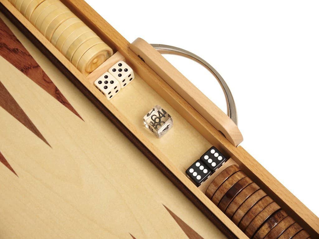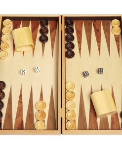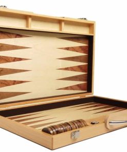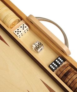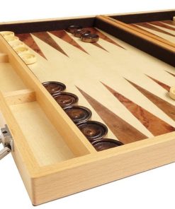 Nada se compara con el encanto de la vieja escuela de un juego de backgammon de madera. Este gran juego de backgammon cuenta con un hermoso exterior de madera de olivo, una superficie de juego de madera de haya, fichas y vasos de juego de madera, así como cierres y asa pulidos. Este juego de backgammon es perfecto para jugadores que buscan un juego de backgammon de madera que combine calidad y estilo en un tablero de tamaño completo. Medidas adicionales cuando está cerrado: Largo 18″, Ancho: 11 1/4″, Altura: 2 1/4″; Medidas cuando está abierto: Largo 18″, Ancho: 22 1/2″, Altura: 1 1/8″