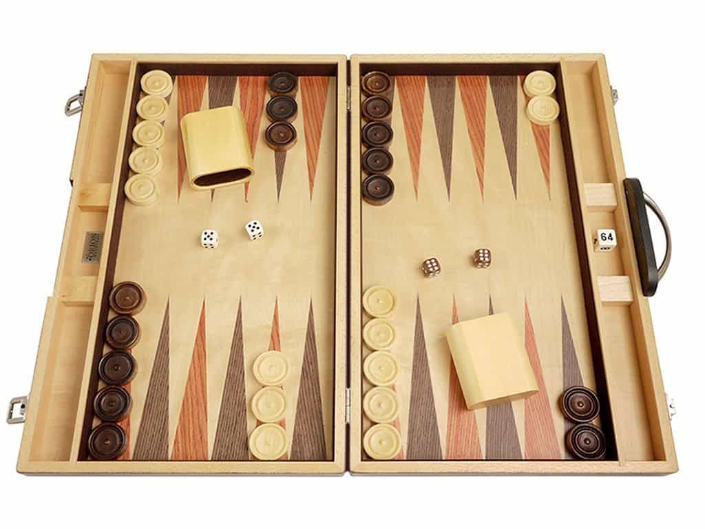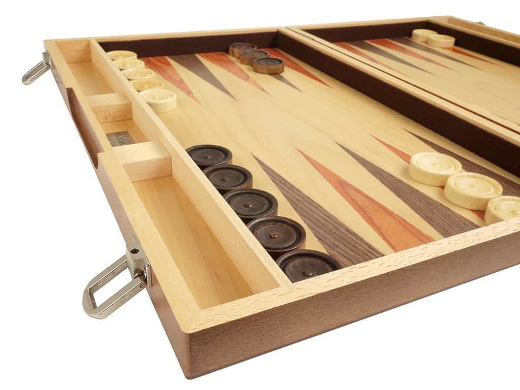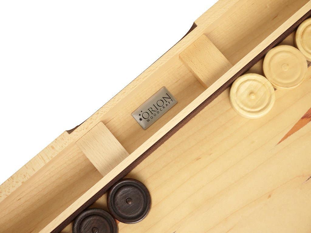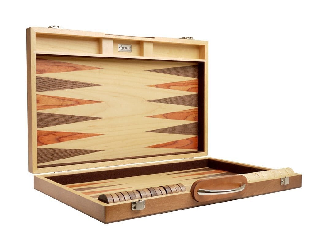 Las maderas exóticas no son solo para muebles y este juego de backgammon de madera es prueba positiva de ello. Este juego de backgammon de madera de 18 pulgadas de Orion Woodcraft presenta un lujoso exterior de olivo burl con una superficie de juego de roble incrustado.
