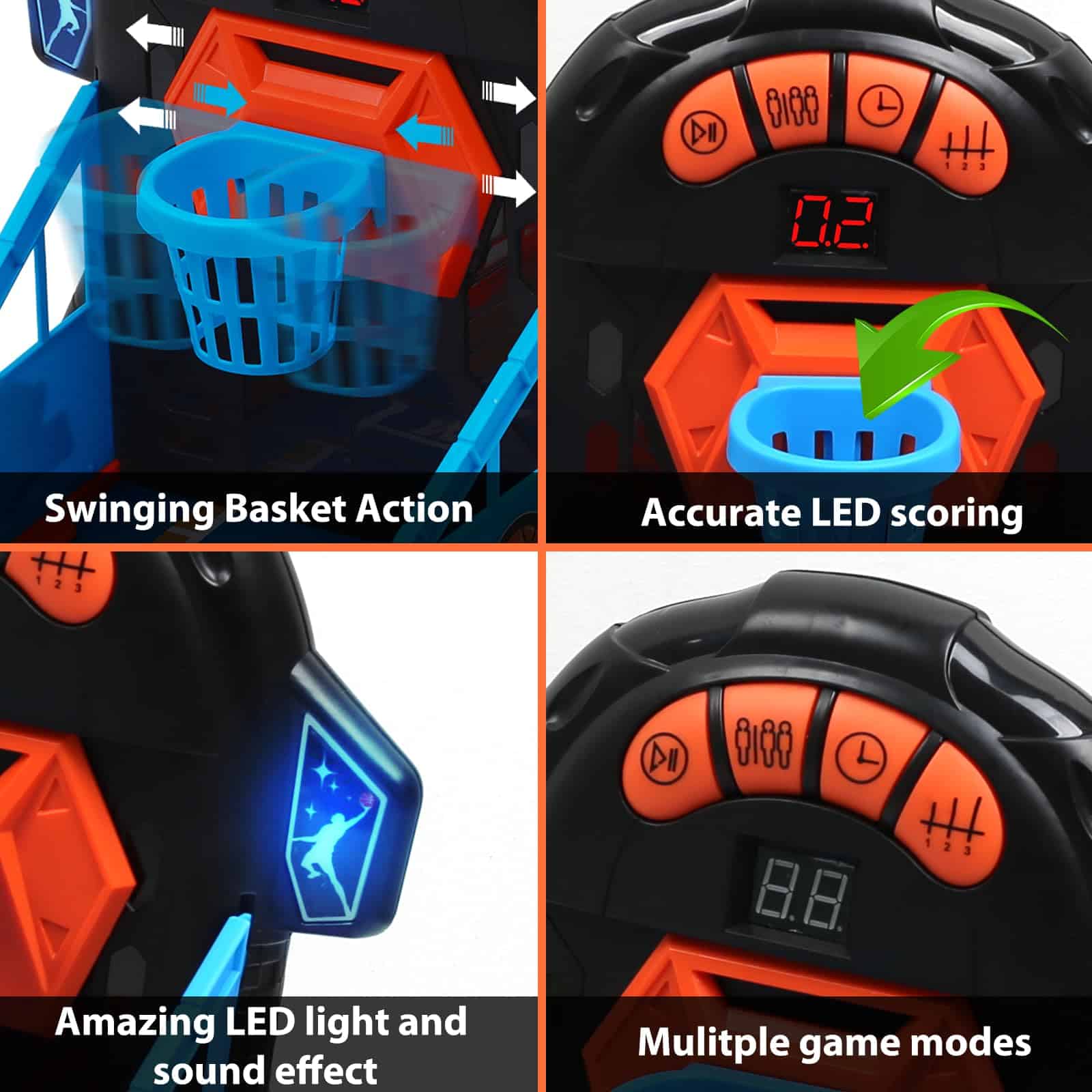 2. Tiroteo Electrónico: Este juego electrónico cuenta con una canasta móvil y luces llamativas, agregando emoción y desafío a cada tiroteo. Practica tu puntería y habilidades de puntuación mientras vas por el tiro ganador!.