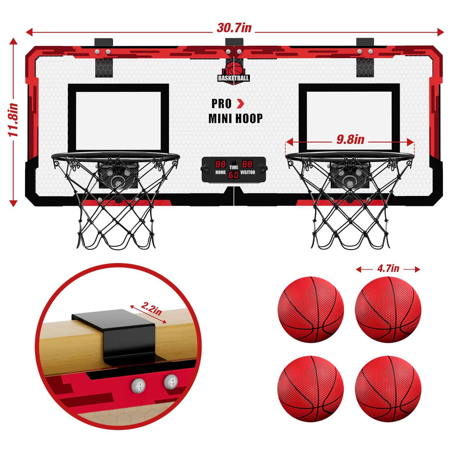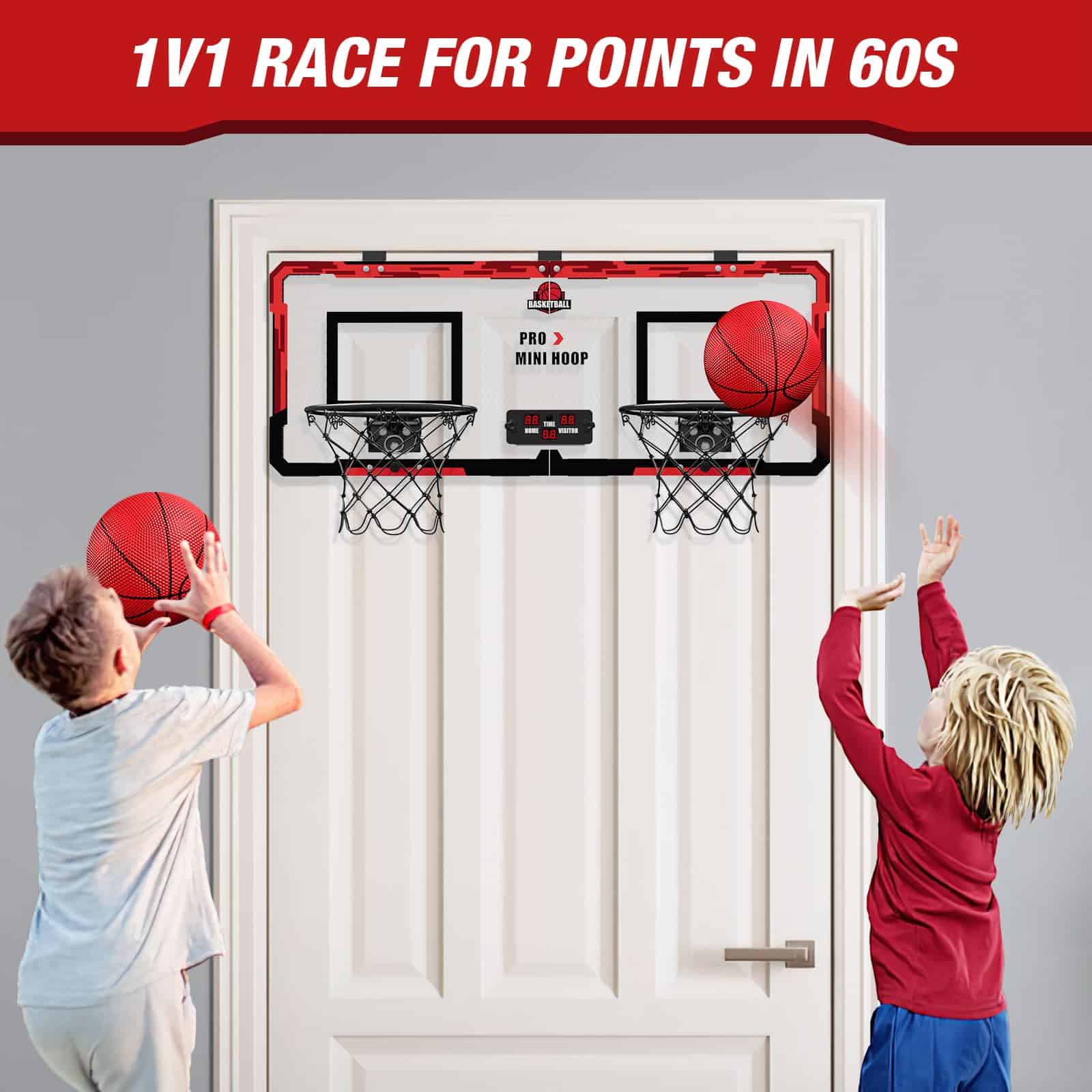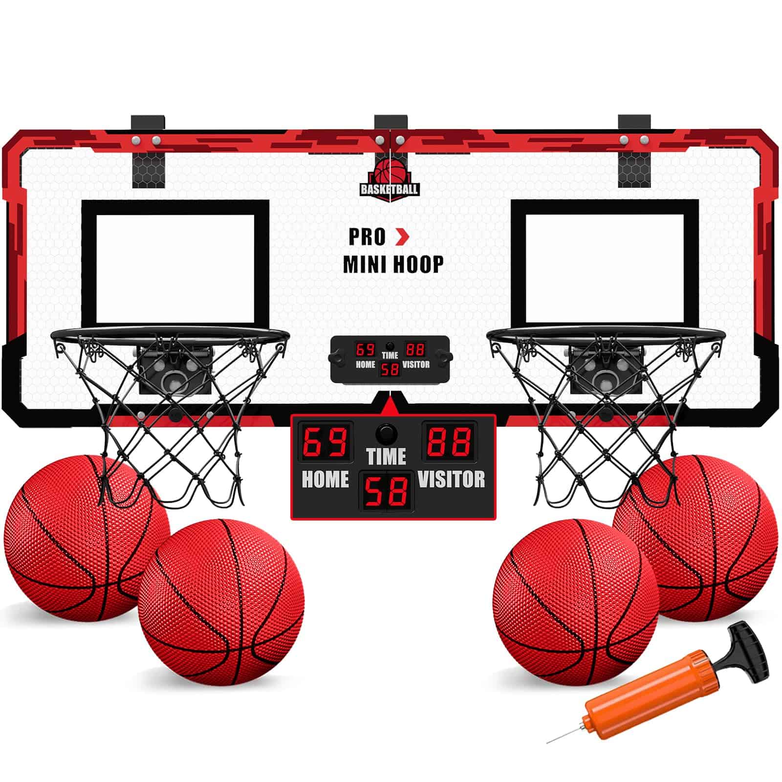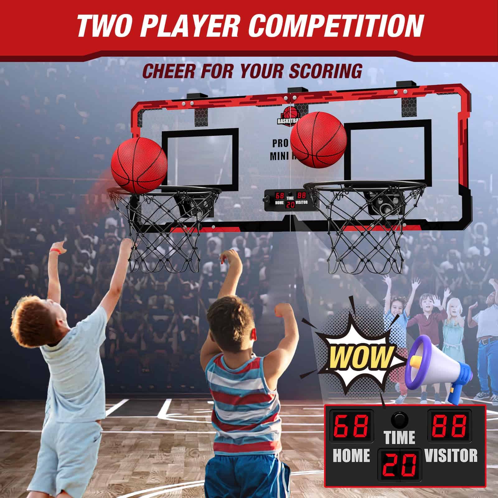 1. Juego de baloncesto electrónico para 2 jugadores: Nuevo diseño de 2 aros con puntuación electrónica, ¡así que tú y un amigo pueden competir cabeza a cabeza para ver quién tiene el mejor tiro en 60 segundos!