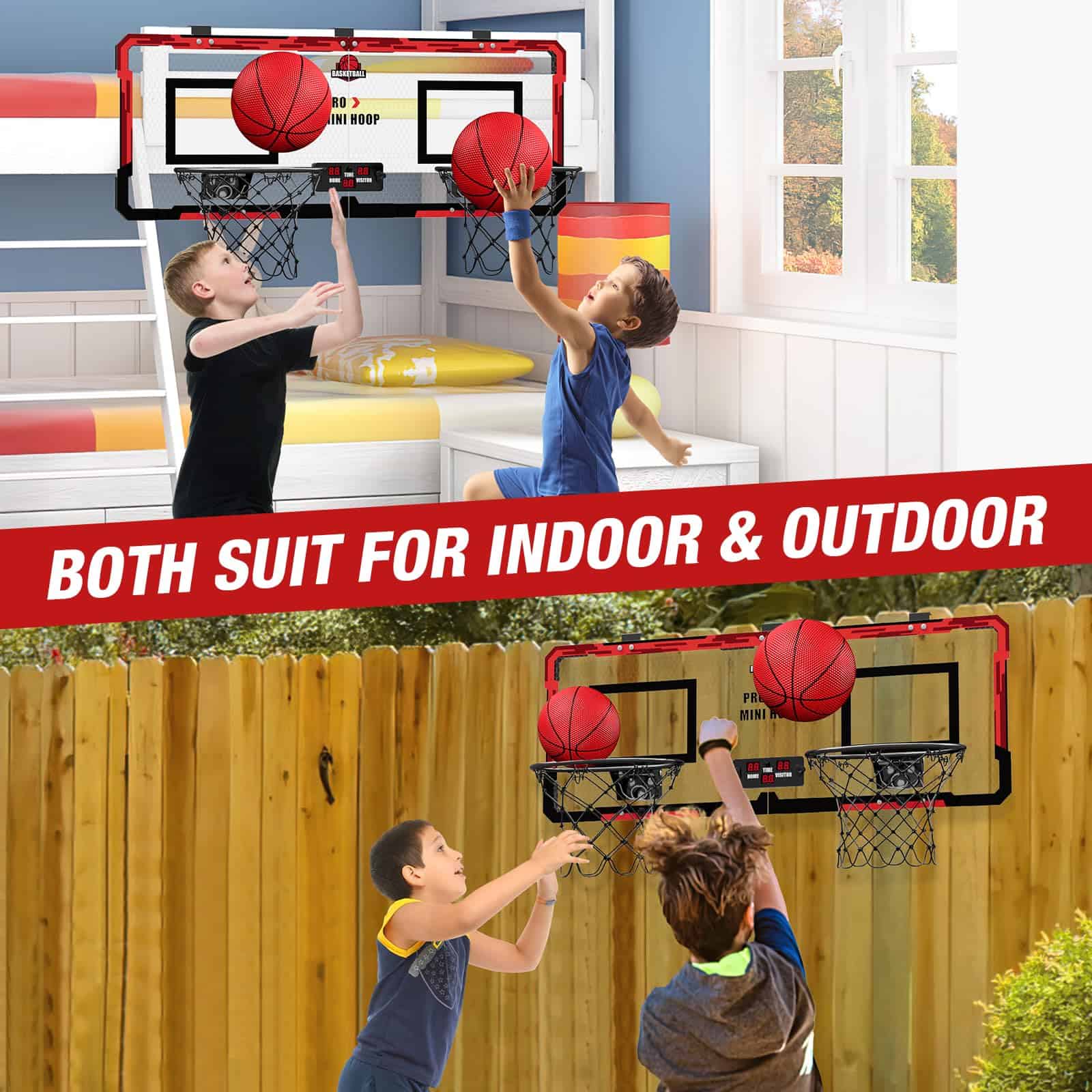 5. Regalo ideal para los aficionados al baloncesto: Esta mini canasta de baloncesto es una excelente elección de regalo para niños y adultos. La mini canasta de baloncesto no solo cultiva el interés de los niños por el deporte y mejora su físico, sino que también permite a los adultos disfrutar de un descanso que alivia el estrés. ¡Viene con 3 balones, vamos a jugar un juego de baloncesto con tu familia o amigos!