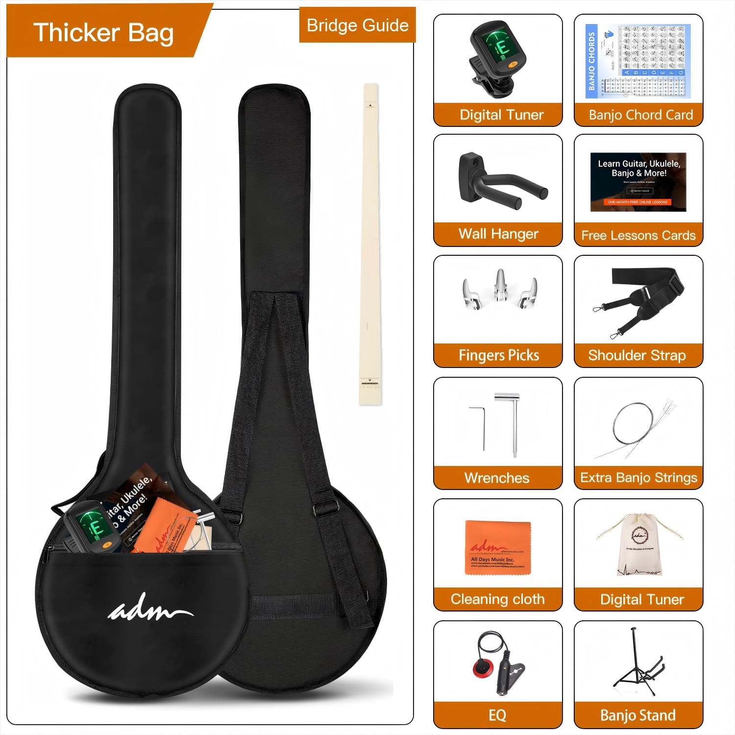 Juego de Banjo de 5 Cuerdas ADM de Tamaño Completo, Set de