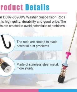 Marca: M Motico. Paquete Incluye: 4pcs de barras de suspensión. Condición: 100% Brand New. Dimensiones: 26.2 pulgadas. La barra de suspensión DC97-05280W soporta la tina de la lavadora y la mantiene estable durante cargas desequilibradas. Actúa como un amortiguador que permite que la tina de la lavadora se mueva mientras ayuda a minimizar la vibración en el modo de centrifugado. Reemplazar las cuatro barras de suspensión a menudo corrige las lavadoras Samsung que se desequilibran y muestran el código de error DC. Si una o más de las barras de suspensión están rotas, la lavadora vibrará o temblará. Nuestras barras de suspensión para lavadora Whirlpool están hechas de material premium probado por el fabricante, con mayor eficiencia, durabilidad adecuada y la mejor calidad para cumplir con los estándares OEM y mantener una vida útil más larga.