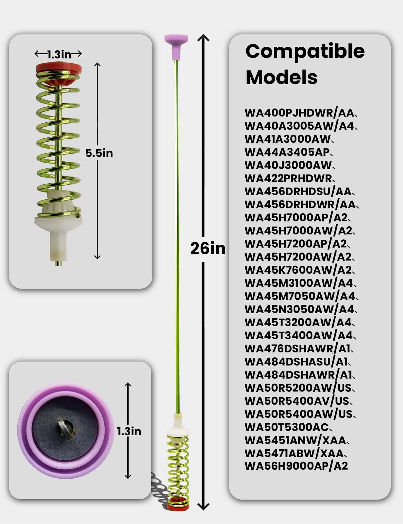 3. Compatible con muchos modelos: Reemplazo de barras de suspensión DC97-16350E para lavadora Samsung, incluidos WA5451ANW WA45H7000AW WA400PJHDWR WA456DRHDWR WA45A7200AW y más. Consulte el sexto gráfico para conocer la compatibilidad con todos los modelos.