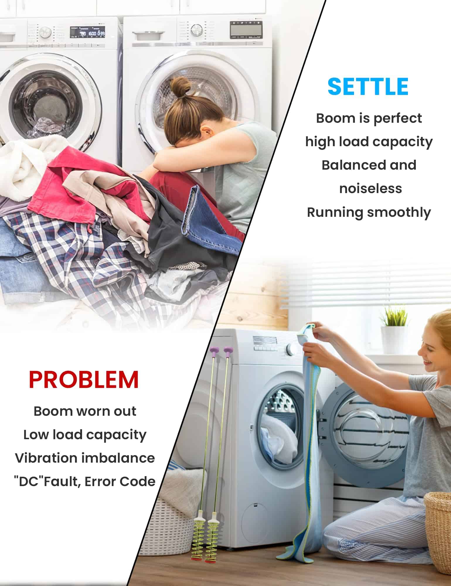 1. Solucionando Desbalances y Errores: Actualización de 4 barras de suspensión DC97-16350E para lavadora Samsung, que ayuda a equilibrar su lavadora Samsung para eliminar vibraciones excesivas, ruido y códigos de error ‘DC’ causados por barras de suspensión rotas.