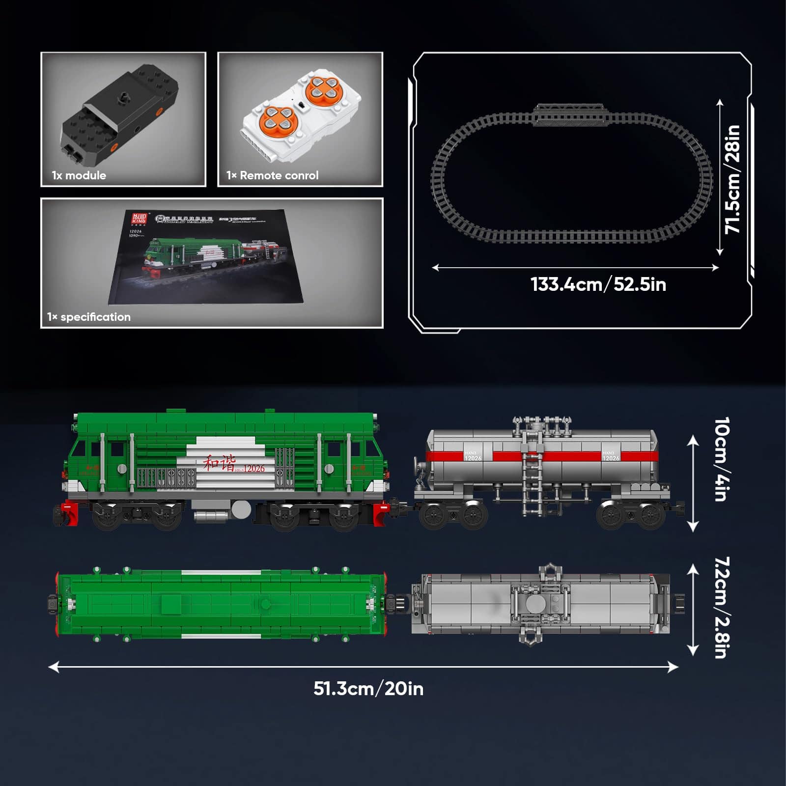 4. Construya su propio tren de exhibición – El modelo terminado mide 20″ (L) x 4″ (W) x 2.8″ (H). Las vías miden 133.4 cm (L) x 71.5 cm (W). Es fácil de ensamblar y ser una decoración llamativa.
