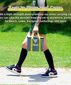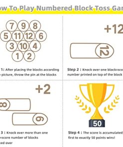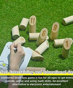 Juego de Bloques de Números Gorock, Juego de Bolos de Madera con Tablero de Puntuación y Bolsa de Transporte, Juego Gigante de Patio Trasero al Aire Libre para Niños y Adultos. 1. Perfecto juego de lanzamiento para todas las edades para jugar al aire libre, ser activo y usar habilidades matemáticas. Fácil de aprender, simplemente coloca los bloques numerados firmemente en el suelo y luego los jugadores ganan puntos lanzando el pin de lanzamiento. El número de bloques lanzados es igual a tu puntuación. Si solo lanzas un bloque, tu puntuación es igual al número en los bloques. ¡El primer jugador en alcanzar 50 puntos gana! También puedes usar tu imaginación para crear nuevas formas de juego. 2. SET DE JUEGO DE LANZAMIENTO DE MADERA COMPLETA: el juego de jardín kubb de números Gorock viene con 12 bloques numerados (2.2″x2.2″x6″), 1 pin de lanzamiento (2.2″x2.2″x10″), 1 tablero de puntuación blanco con marcador y una bolsa de transporte con cremallera de alta calidad. Este juego de lanzamiento de pista es adecuado para que 2 o más jugadores disfruten del tiempo de ocio con sus amigos o familiares jugando al Juego Estratégico de Lanzamiento. 3. SEGURIDAD Y CALIDAD: los bloques numerados y el pin de lanzamiento Gorock están hechos de madera de caucho seleccionada a mano, que es una madera ecológica absorbente de impacto que no se astilla ni resquebraja. Los bloques están cuidadosamente biselados y pulidos sin rebabas ni astillas. Este popular juego de lanzamiento de madera al aire libre puede resistir el desgaste en cualquier escenario. La construcción de madera dura sólida ofrecerá años de diversión en juegos de exterior y jardín. 4. JUEGA EN CUALQUIER LUGAR: el juego de lanzamiento de madera Gorock es un gran juego de césped al aire libre. No solo es un juego al aire libre para adultos y familias, sino que también es adecuado para niños y adolescentes en el césped al aire libre. Muy fácil de transportar y almacenar con una bolsa de transporte de nylon resistente con cremallera impermeable de alta resistencia. Este clásico juego de bolos de madera de césped es perfecto para jugar durante reuniones en la playa, en el césped, en reuniones familiares, en asados, en fiestas de cola, en viajes de campamento y más. 5. ELECCIÓN DE REGALO IDEAL Y 100% DE SATISFACCIÓN: los juegos de lanzamiento de madera clásicos son el mejor regalo de Acción de Gracias, Navidad, Cumpleaños y Vacaciones para niños, adultos y familias. ¡Haz que sea el mejor recuerdo para ti y tu familia y amigos! Tu satisfacción es de suma importancia para nosotros, ofrecemos servicio al cliente las 24 horas y devolución sin razón de 30 días. Cualquier pregunta, no dudes en contactarnos, haremos todo lo posible para ayudarte a resolver tu problema.