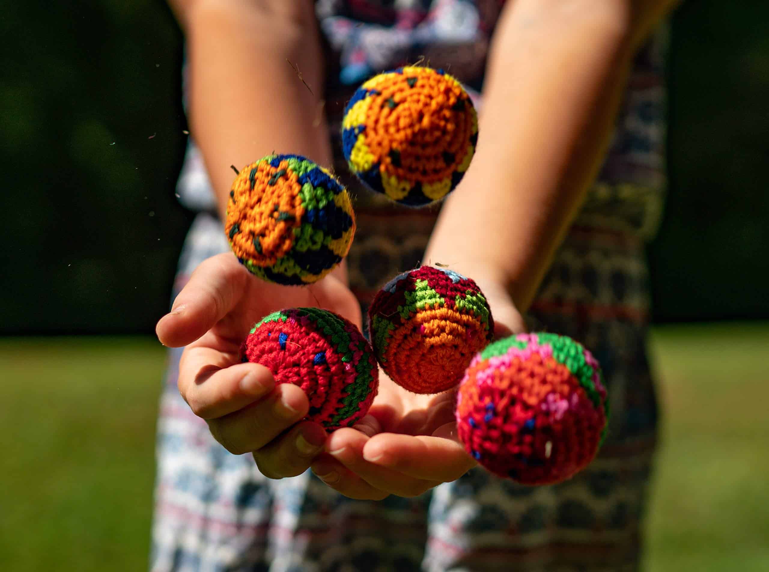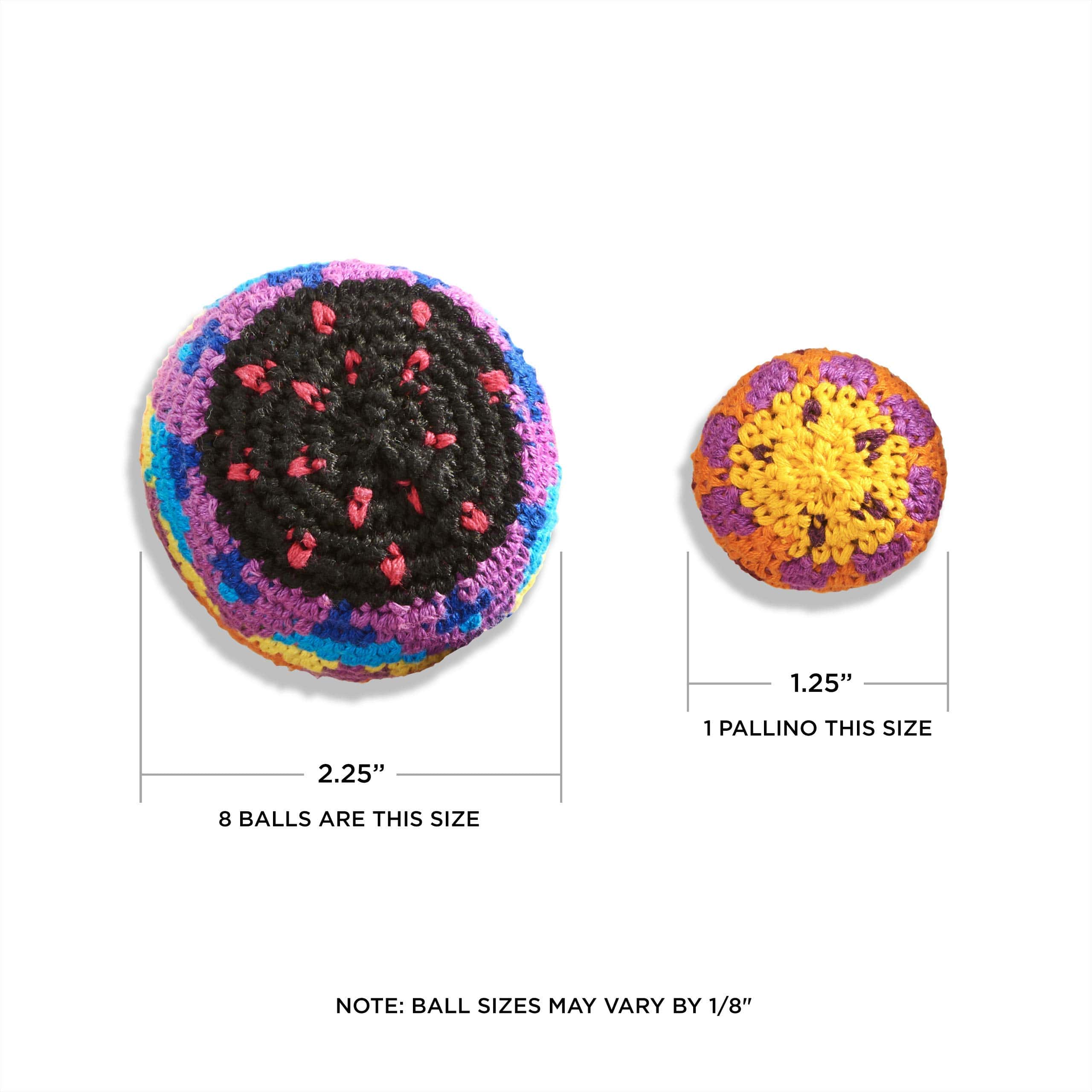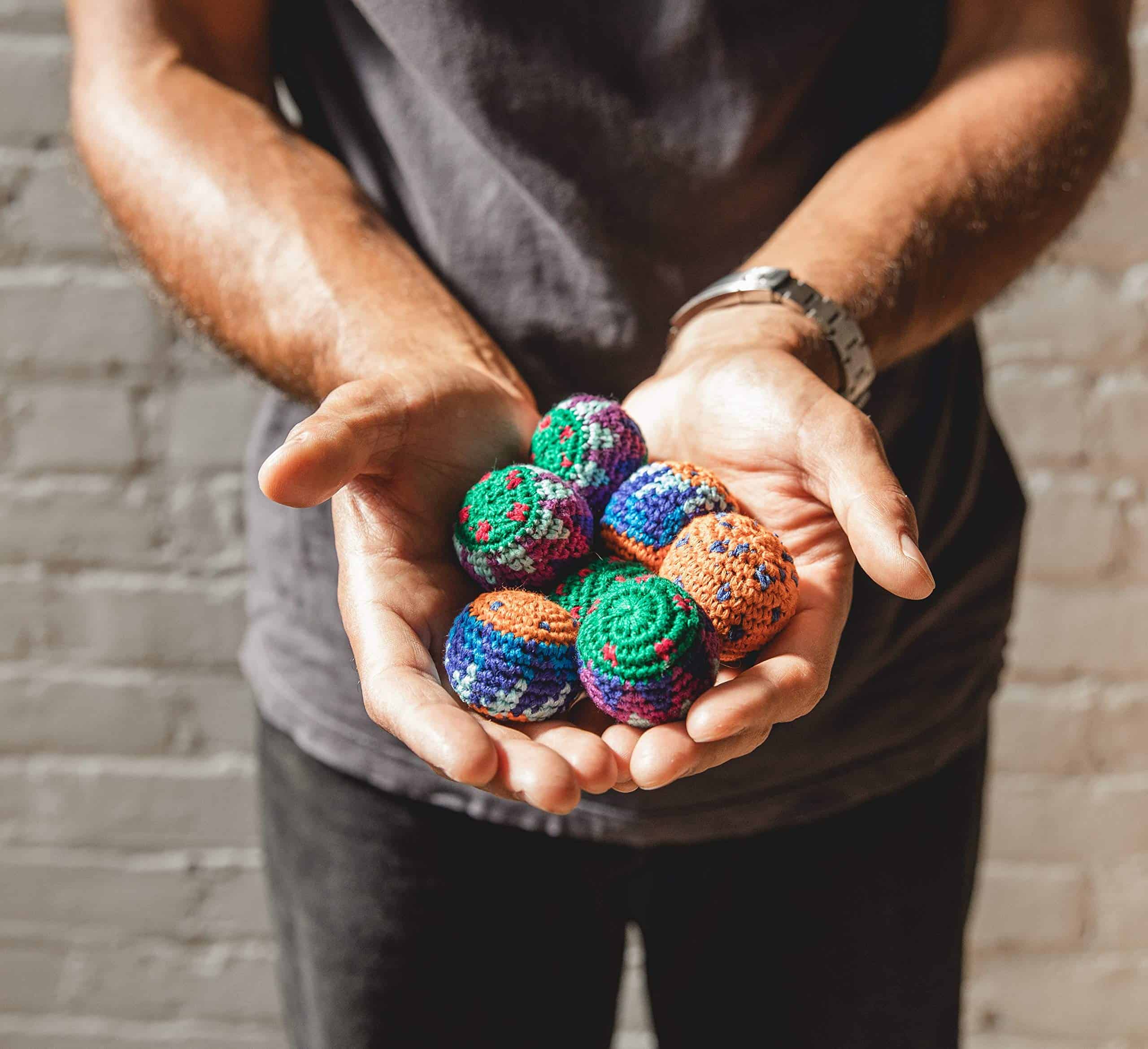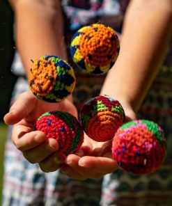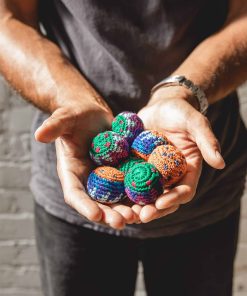 5. COMBINACIÓN DE COLORES ALEATORIA – Ten en cuenta: debido a su naturaleza hecha a mano, cada foot sack es único y los atrevidos patrones y combinaciones de colores son aleatorios. Aunque tu hacky sack de punto puede que no se vea exactamente como el de la imagen, te prometemos que será igual de hermoso.