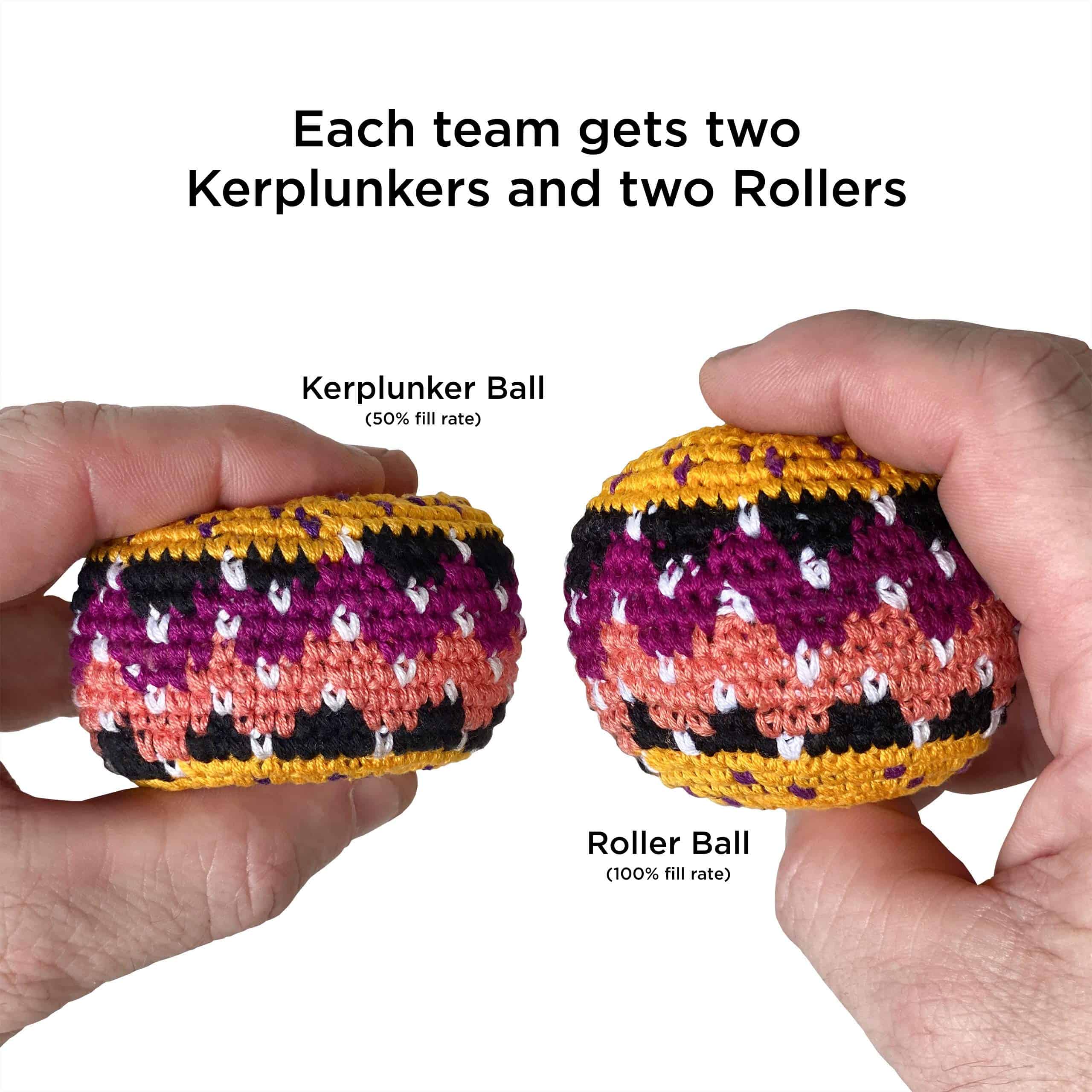 3. Cada equipo tiene dos bolas apretadas llamadas Rollers y 2 blandas llamadas Kerplunkers. Los Rollers son geniales para los ítems 3 y 4 arriba mientras que los Kerplunkers son buenos para el ítem 2 y para los tiros que no quieres que se muevan mucho después de tocar el suelo.
