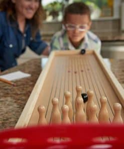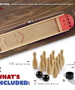 No tienes que salir de casa para tener toda la emoción del boliche con este juego de bolos de mesa. Bowl-A-Mania cuenta con un marco de madera maciza, un pin setter y un lanzador duradero que envía la bola por la pista. Tu búsqueda de un juego de bolos perfecto puede durar años y ni siquiera tienes que cambiar esos ridículos zapatos de bolos