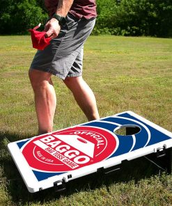 Este completo juego de bolsas de frijoles BAGGO cuenta con diseños audaces en rojo, blanco y azul en los 2 tableros de BAGGO y bolsas de frijoles a juego en rojo y azul. Los dos tableros oficiales de juego de Baggo están construidos de polietileno moldeado por soplado, ligero y de alto impacto, que proporciona una durabilidad duradera para años de diversión. El juego completo se empaca en sí mismo y se transporta como una maleta, convirtiéndolo en el juego más portátil del mercado. Ya sea en una fiesta con amigos, una reunión en el patio trasero o simplemente en una pre-fiesta de cola, ¡ningún otro juego de bolsas de frijoles se compara! BAGGO, el mejor juego de jardín JAMÁS, viene completo con: Dos tableros oficiales de juego de BAGGO, ocho bolsas de frijoles oficiales (4 en cada uno de los 2 colores), un folleto de instrucciones a color de 10 páginas, soporte de montaje en pared (para almacenamiento y exhibición), contadores de puntuación incorporados y regulador de distancia. Todos nuestros tableros BAGGO tienen garantía de por vida.