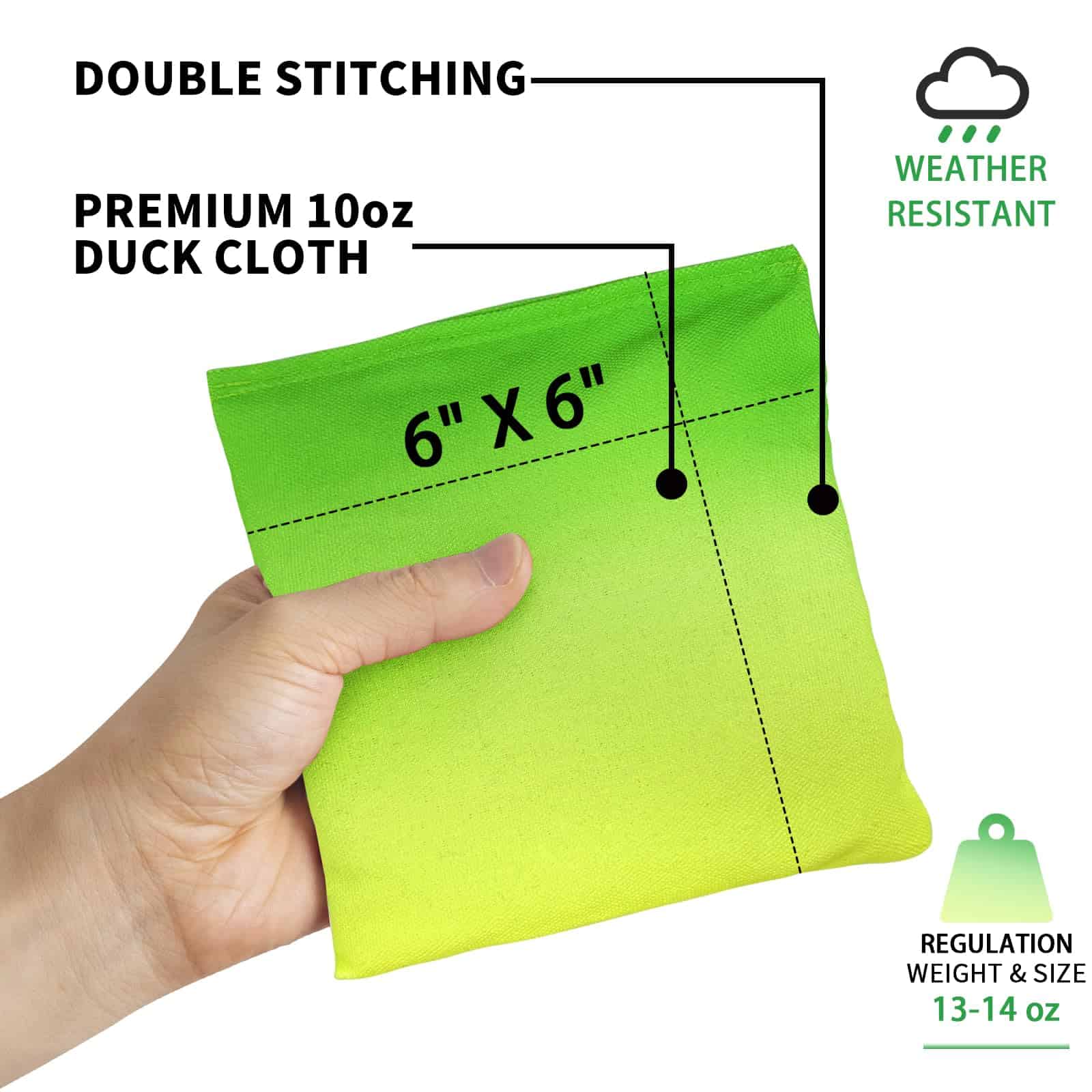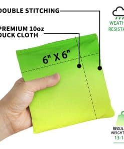 1. TAMAÑO Y PESO REGLAMENTARIOS: Juego profesional de 8 bolsas de maíz, cada una mide 6″x6″ y pesa entre 13 y 14 onzas, que es el tamaño y peso tradicional, ofreciéndote un toque cómodo y un agarre firme. Viene en una bolsa para un almacenamiento y transporte fácil.