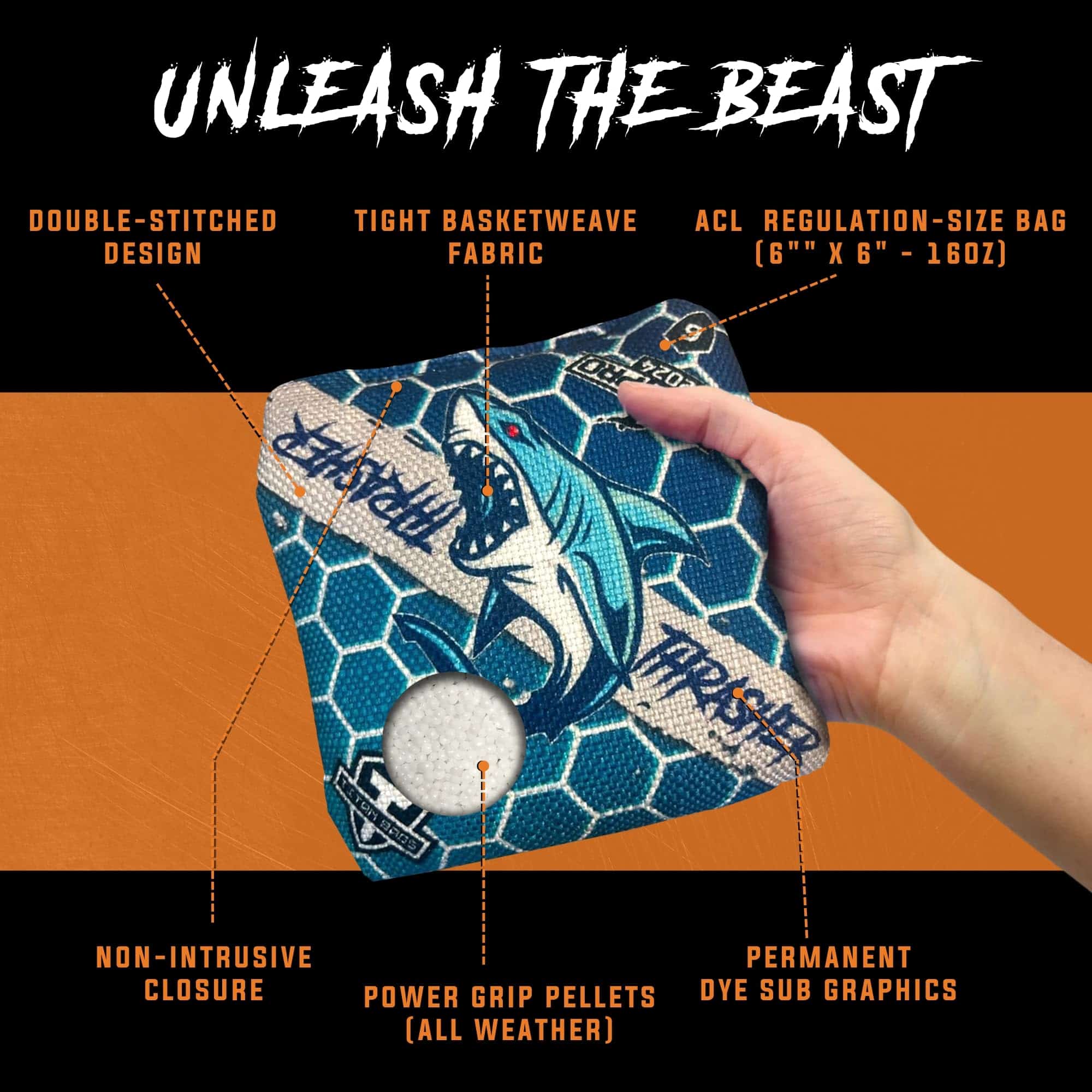 1. Bolsas de maíz THRASHER TITAN recomendadas por profesionales: Eleva tu juego de corn hole con nuestras bolsas de maíz thrasher honeycomb de primera calidad de 16 oz, 6″ x 6″. Estas bolsas de maíz de juego revolucionarias están fabricadas para jugar de manera profesional, contando con un tejido duradero de tackey perfecto para el deporte de lanzamiento. Diseñadas para uso tanto en interiores como en exteriores, estas bolsas de maíz son esenciales para cualquier persona seria acerca de sus juegos de lanzamiento, asegurando pesos precisos y una diversión incomparable en cada torneo.