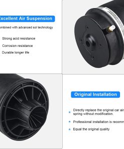 CARACTERÍSTICAS: Distribución de peso adecuada a todos los neumáticos mejora la dirección, frenado y desgaste de los neumáticos. Absorbe bombas, reduce la frecuencia de vibración al conducir en la carretera, evita el daño de otras partes de los vehículos de carga pesada. La calidad cumple o excede el rendimiento OEM. Instale las suspensiones de los amortiguadores de aire originales del automóvil directamente sin modificaciones. Los resortes de aire aumentan la tasa de resorte y mejoran enormemente la estabilidad del vehículo, lo que significa un paseo más seguro y cómodo. Mejora el rendimiento del vehículo incluso bajo clima extremo con bajo ruido, menos fricción y larga vida útil. NUMERO OE DE REFERENCIA: 2513200025, 2513200325, 2513200425 LA PRIMA DE AIRE COMPATIBLE CON: Reemplazo para Mercedes-Benz R320 2007 2008 2009 Reemplazo para Mercedes-Benz R350 2006 2007 2008 2009 2010 2011 2012 2013 Reemplazo para Mercedes-Benz R500 2006 2007 2008 Reemplazo para Mercedes-Benz R550 2008 Reemplazo para Mercedes-Benz R63 AMG 2007 PAQUETE INCLUYENDO: 2 x PCS Air SPRING BAGS (para la izquierda y derecha traseras) ATENCIÓN: -Por favor, confirme la compatibilidad antes de ordenar – La instrucción no está incluida. Se recomienda la instalación profesional.