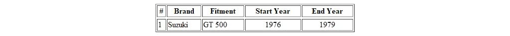 Este cable es compatible con los siguientes modelos Suzuki 500 GT 500 (1976-1979).
