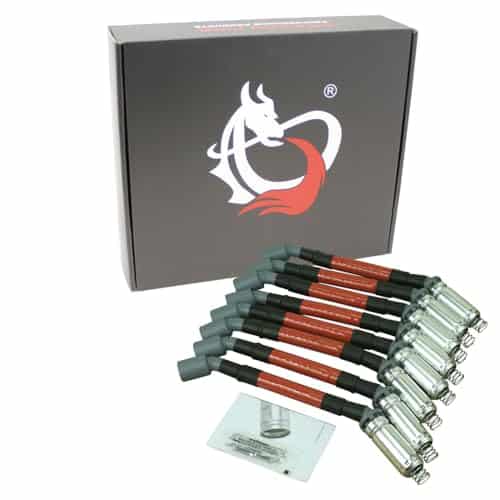 El Juego de cables de bujía de la serie Sport de DRAGON FIRE PERFORMANCE ha sido diseñado pensando en el rendimiento y la fiabilidad. Cuenta con una funda de fibra de vidrio recubierta de silicona extraíble, núcleo de Kevlar, malla de protección de fibra de vidrio de alta resistencia, enrollado de precisión para una transferencia de voltaje máxima y una protección RFI/EMI superior, botas de cable de bujía extra gruesas, ajuste de bota de cable de bujía extra apretado, todas las conexiones son estancas al agua e impermeables, probado y asegurado para que coincida con el ajuste OE. Se utilizan solo materiales de la mejor calidad para una larga vida útil. Longitudes de cables: 8×10.5″.