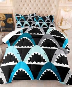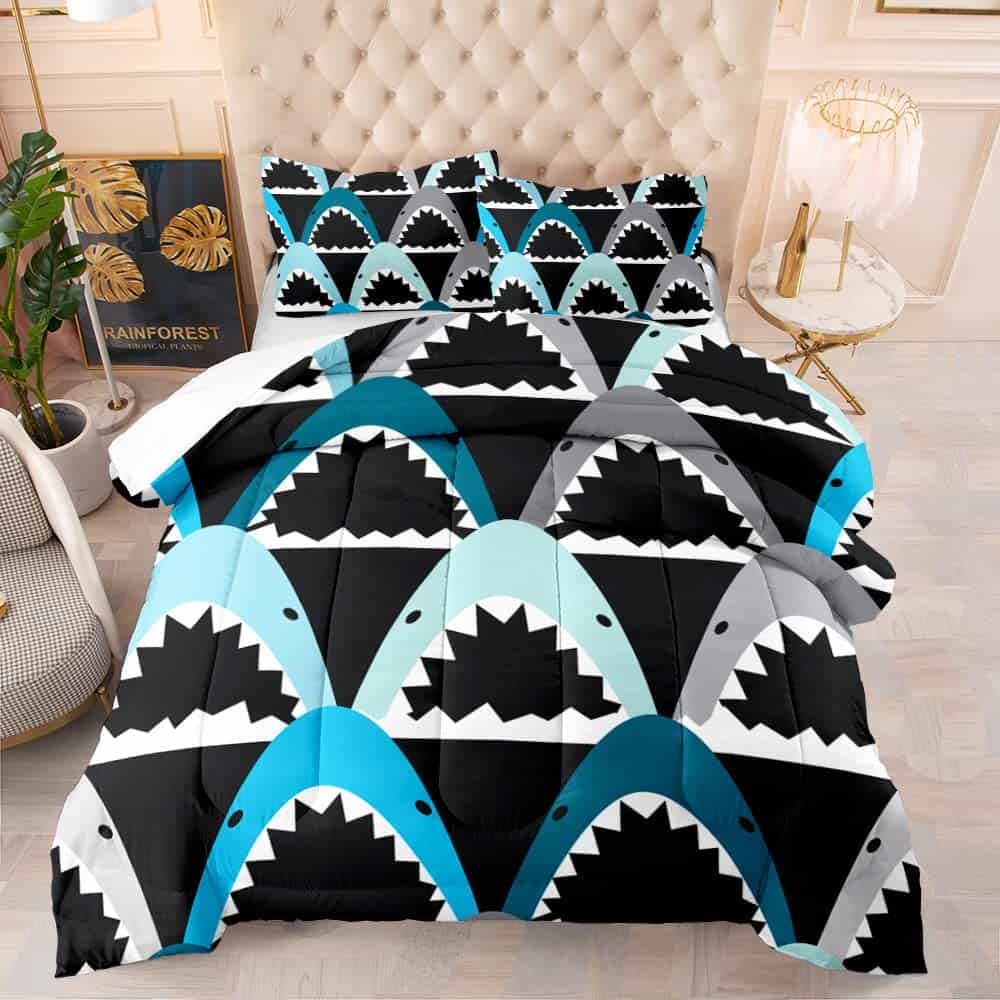Juego de Cama 3D de Tiburón Negro Azul de Dibujos Animados