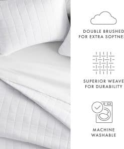 La elegancia casual se encuentra con la comodidad pura sin compromisos con este Cubrecama Acolchado Premium de Simply Soft. Seguro de complementar cualquier estilo de dormitorio, este hermoso cubrecama está disponible en tres patrones atemporales y seis colores cautivadores y de época. El Cubrecama Simply Soft está hilado con nuestras hilazas Premium de Microfibra, ofreciendo el doble de durabilidad que el algodón y es 100% hipoalergénico. Disfruta de un mantenimiento fácil con esta belleza premium lavable a máquina, sin arrugas y resistente a las manchas. Verdaderamente un Cubrecama de Todas las Estaciones, te mantendrá cálido en el invierno y fresco en el verano. El Cubrecama Acolchado Premium de Simply Soft seguramente le dará el toque final a tu tranquilo oasis de dormitorio. GUÍA DE TALLAS: El set Twin / Twin Extra Largo incluye:. 1 Cubrecama Acolchado: 68″W x 90″L. 1 Funda de Almohada: 20″W x 26″LEl set Full / Queen Incluye:. 1 Cubrecama Acolchado: 90″W x 92″L. 2 Fundas de Almohada: 20″W x 26″LEl set King / California King Incluye:. 1 Cubrecama Acolchado: 106″W x 96″L. 2 Fundas de Almohada: 20″W x 36″L