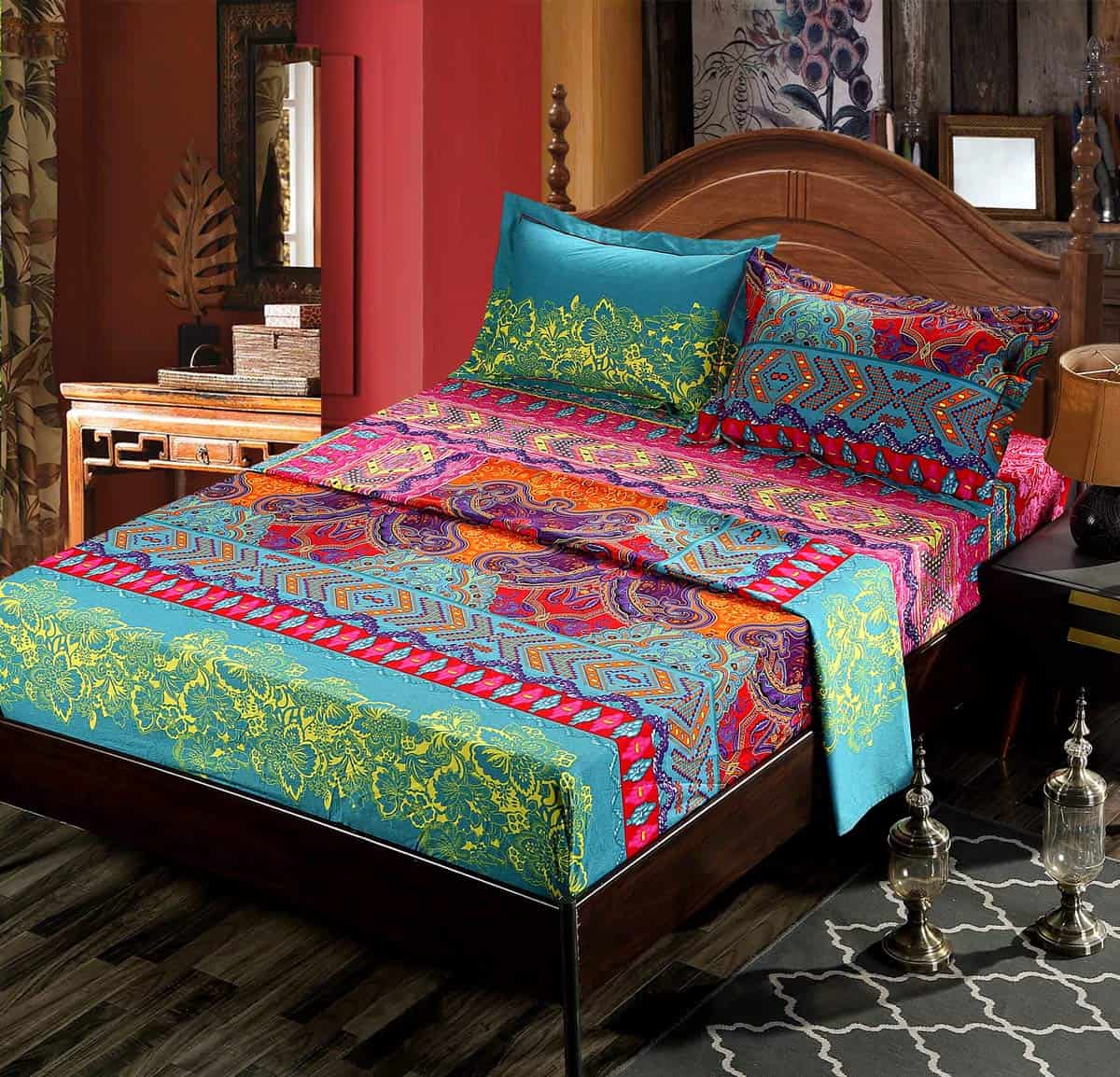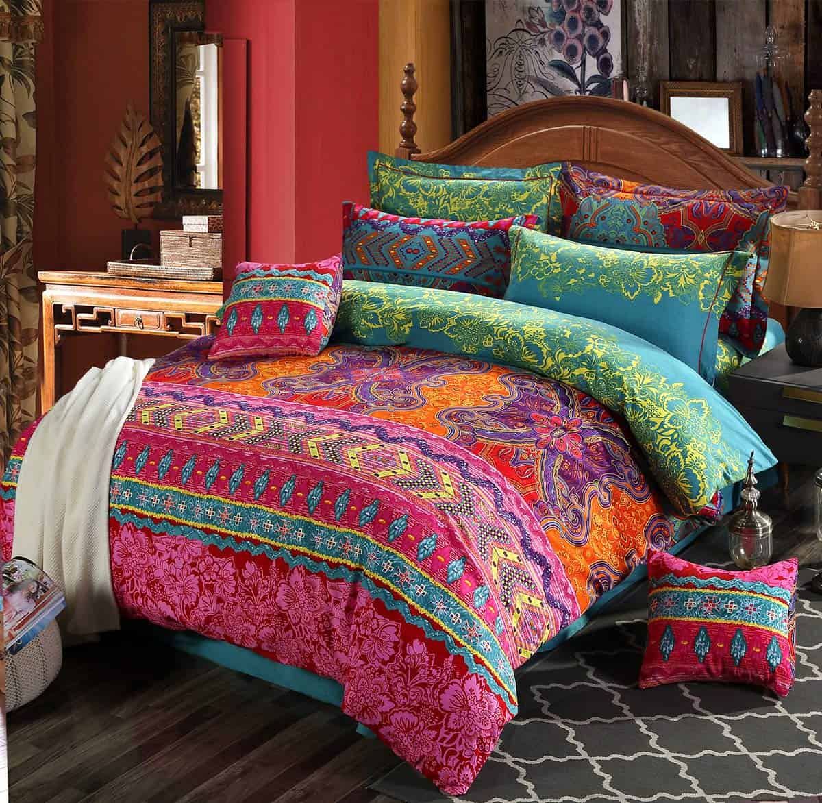 Juego de Cama Bohemia Étnico de 4 Piezas Full Size, Juego