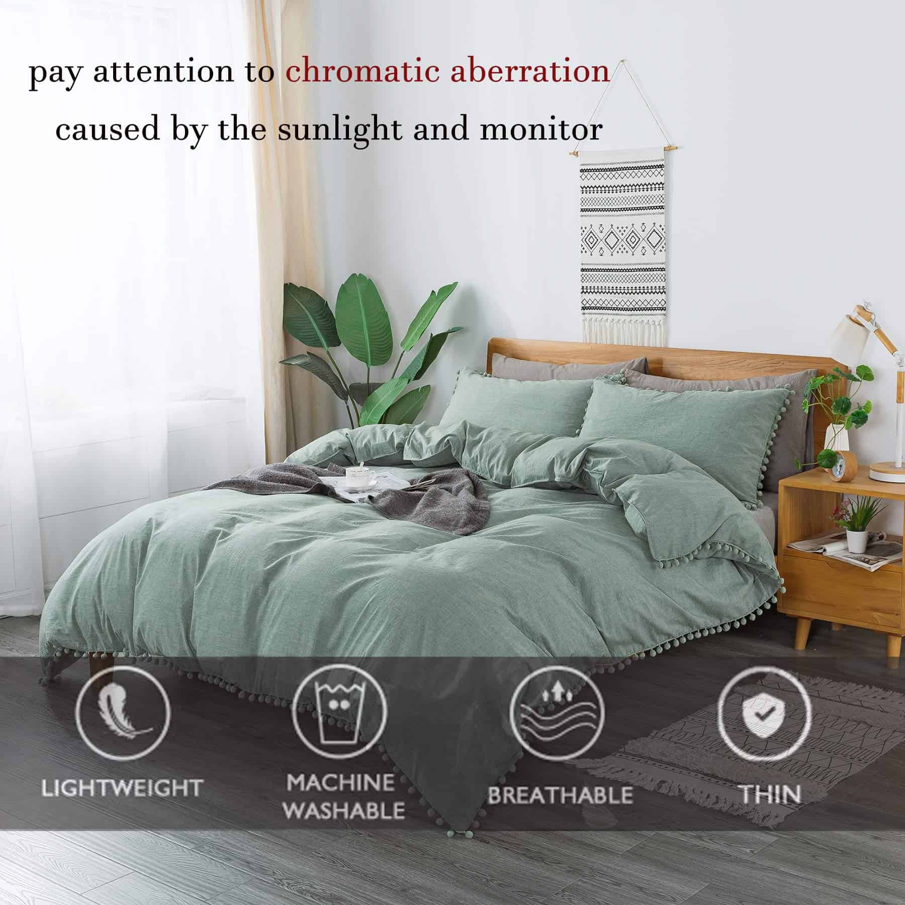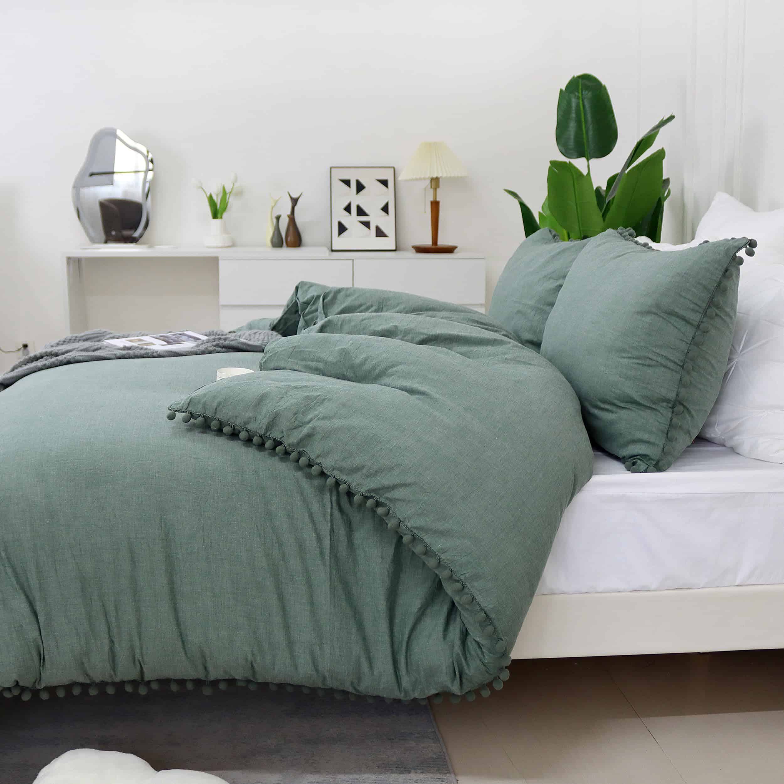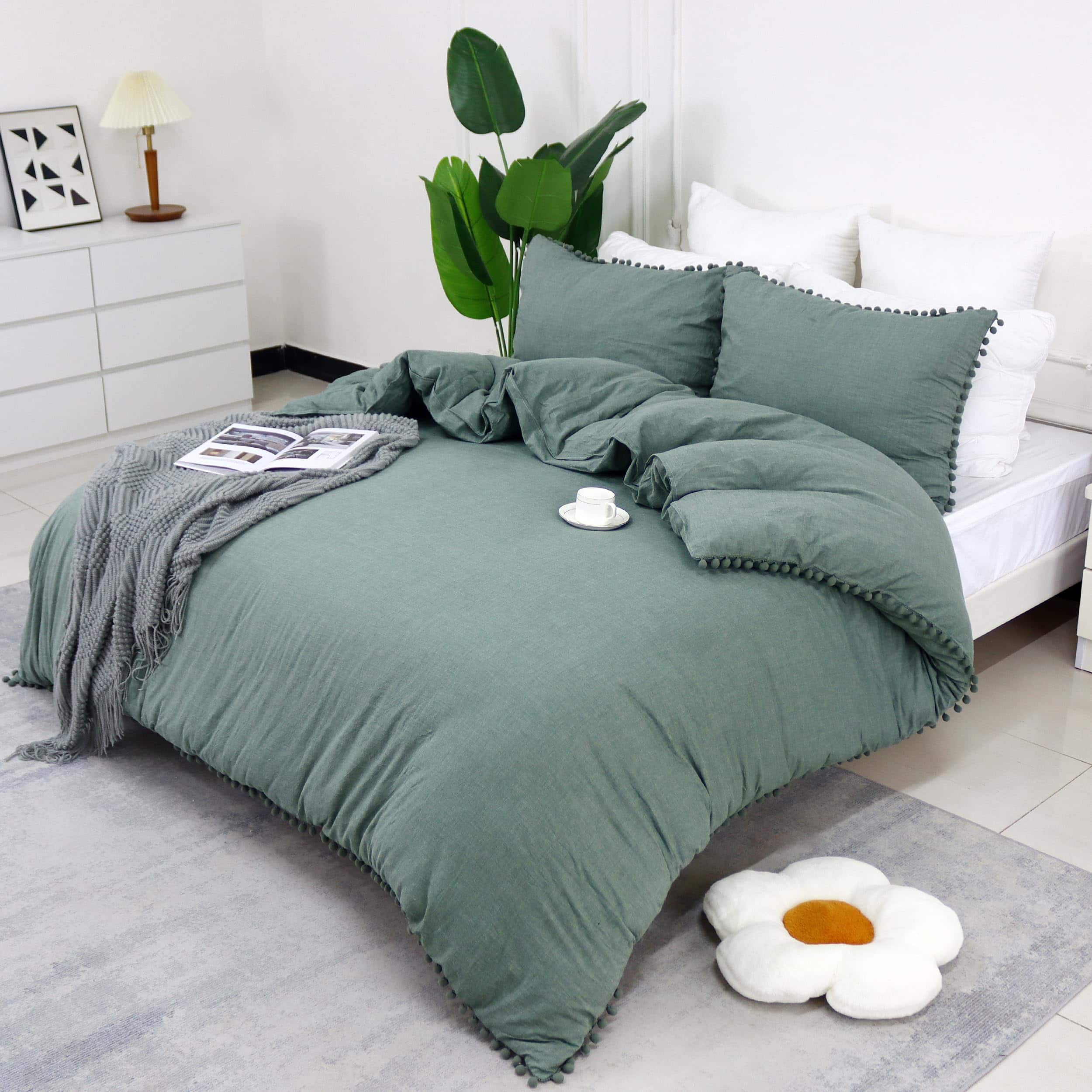 Tienda Softta: Alta calidad de vida, no deberías haberlo rechazado, lo mismo es cierto para una maravillosa noche. Material: – Algodón Lavado 100%, la tela es más suave y cómoda. El delicado pompón agrega un estilo bohemio a tu dormitorio. El compañero perfecto para tu noche, el adorno perfecto para tu dormitorio. El mejor regalo para tus amigos y para quien amas~ – Información de Tamaño: – Tamaño Twin Incluye: 1 Cubierta de Edredón 68 x 88 pulgadas, 2 Fundas de Almohada 20×30 pulgadas. Tamaño Twin XL Incluye: 1 Cubierta de Edredón 69 x 92 pulgadas, 2 Fundas de Almohada 20×30 pulgadas. Tamaño Full Incluye: 1 Cubierta de Edredón 82 x 86 pulgadas, 2 Fundas de Almohada 20×30 pulgadas. Tamaño Queen Incluye: 1 Cubierta de Edredón 88 x 88 pulgadas, 2 Fundas de Almohada 20 x 30 pulgadas. Tamaño King Incluye: 1 Cubierta de Edredón 106 x 92 pulgadas, 2 Fundas de Almohada 20 x 36 pulgadas. Tamaño California King Incluye: 1 Cubierta de Edredón 104 x 98 pulgadas, 2 Fundas de Almohada 20 x 36 pulgadas. Garantía: – Prometemos 100% de devolución de dinero por cualquier problema de calidad del producto. Juego de Cama Softta – principalmente utilizando algodón ecológico adecuado para la piel humana, larga durabilidad del color y sin formación de bolitas. Además, se considera más suave y cómodo que el poliéster. Algunos productos de poliéster causan electricidad estática que fácilmente absorbe tus cabellos, los cabellos de tus mascotas y el polvo. La tela de algodón completo tiene la ventaja de no generar electricidad estática y ser excelente en suavidad, permeabilidad y conservación del calor. Con tales beneficios, cada vez más personas prefieren juegos de cama de algodón completo. Consejos: – 1. Debido a la luz y a los monitores de computadora, el color puede variar ligeramente. 2. Por favor permita una diferencia de medición de 1-2cm debido a la medición manual. 3. Cualquier pregunta sobre nuestros artículos o servicio, no dude en contactarnos; haremos todo lo posible para darle una respuesta lo antes posible!