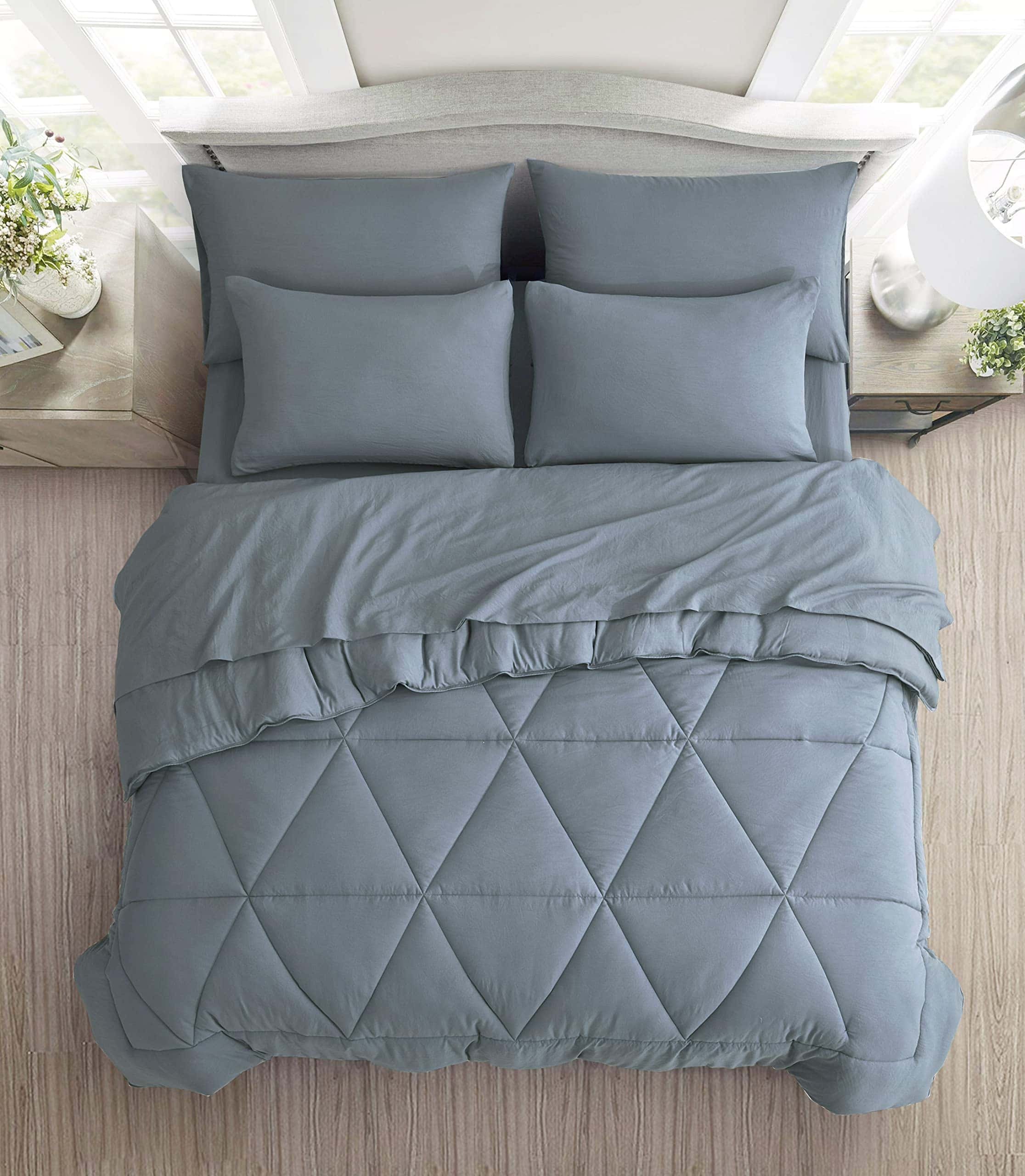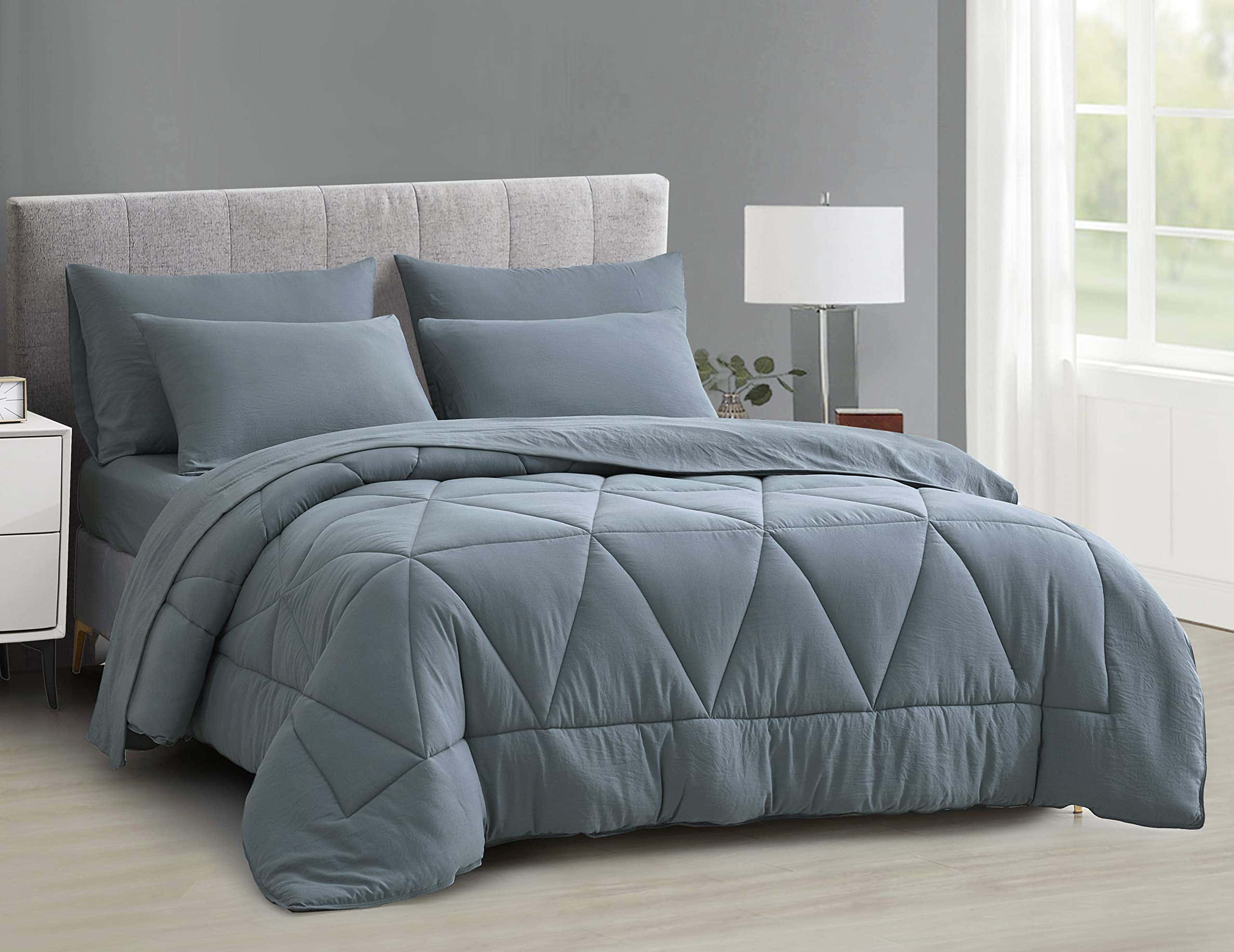 Transforma tu dormitorio de una manera sofisticada y lujosa con este acogedor juego de cama en una bolsa. Un atractivo diseño geométrico de triángulo acolchado con una presentación elegante pero simple que te hace sentir como en casa. Incluido con fundas de almohada de color sólido, fundas de almohada, sábana plana y sábana ajustable para completar tu cama con un toque elegante. Un estilo contemporáneo moderno para refrescar tu habitación mientras proporciona comodidad diaria de manera elegante. Funda nórdica ligera de alto loft con calor adecuado para uso durante todo el año. La funda nórdica está hecha de poliéster 100% microfibra cepillado, dando una sensación súper suave y acogedora. La tela está lavada con piedra que crea un atractivo efecto arrugado natural en la tela para realzar la estética de la funda nórdica. Las sábanas están lavadas con una tela de microfibra cepillada para una sensación suave, manteniéndote cómodo durante toda la noche. Este proceso crea sábanas más fuertes, más duraderas que son resistentes a la decoloración y al encogimiento con un proceso de cuidado fácil. De simple a sofisticado, dale a tu dormitorio un buen toque de elegancia sin sacrificar la comodidad.