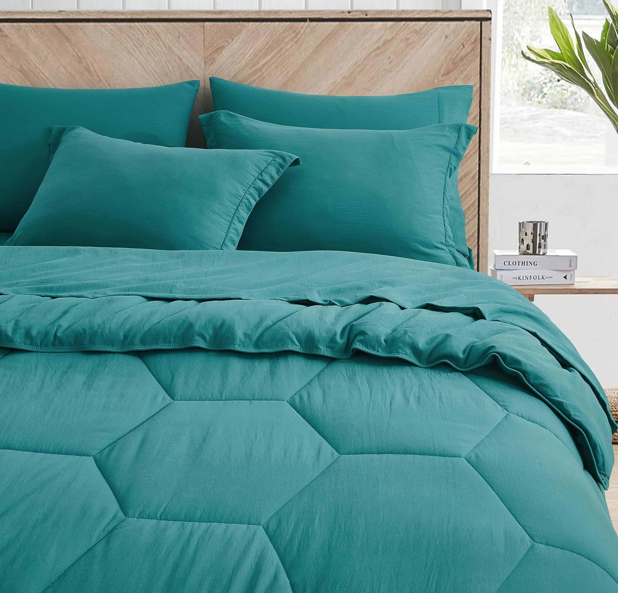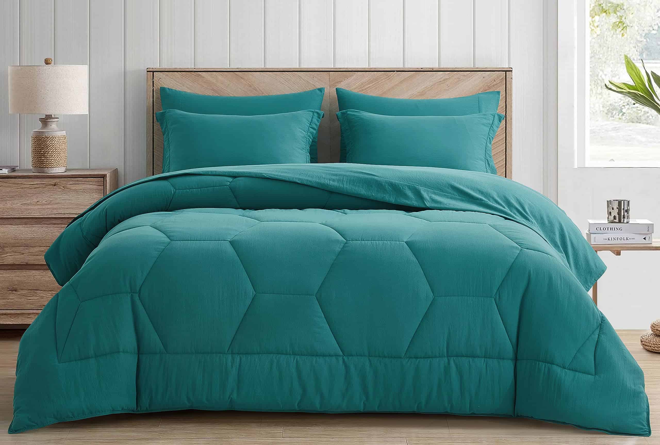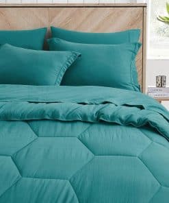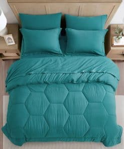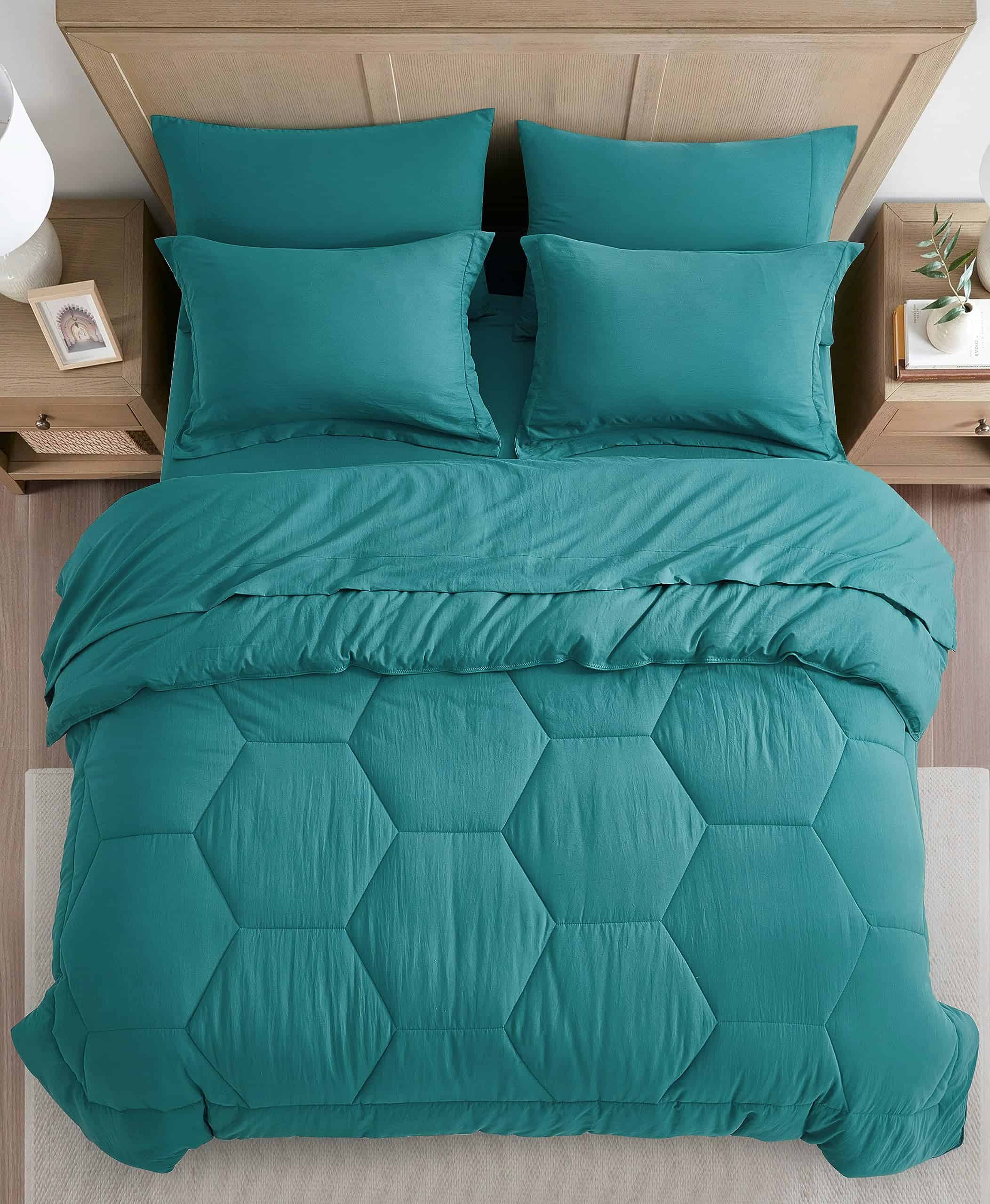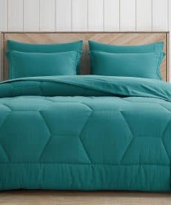 Transforma tu dormitorio de manera sofisticada y lujosa con este acogedor juego de cama con edredón. Diseño atractivo de hexágonos geométricos acolchados con una presentación elegante y sencilla que te hará sentir como en casa. Incluye fundas de almohada, sábanas planas y ajustables en color sólido para completar tu cama con un toque elegante. Un estilo contemporáneo moderno para renovar tu habitación mientras proporciona comodidad diaria de manera elegante. Edredón ligero de alta loft con suficiente calidez para uso durante todo el año. Fabricado con microfibra de poliéster cepillado 100%, que ofrece una sensación suave y acogedora. Las sábanas están lavadas con un tejido de microfibra cepillada para una sensación suave, manteniéndote cómodo durante toda la noche. Este proceso crea sábanas más fuertes y duraderas, resistentes a la decoloración y al encogimiento con un proceso de cuidado fácil. Desde lo simple hasta lo sofisticado, dale a tu dormitorio un toque de elegancia sin sacrificar la comodidad.