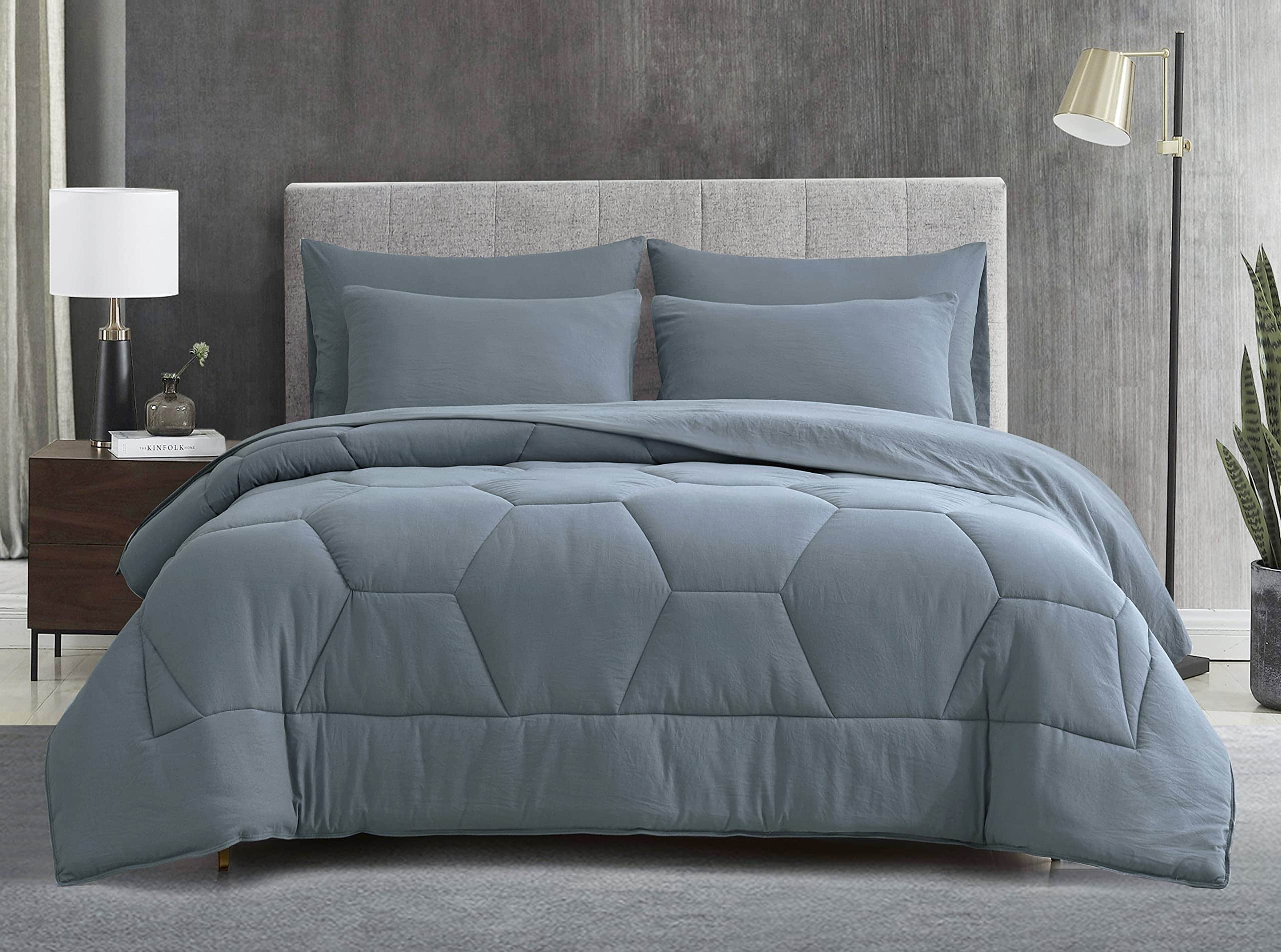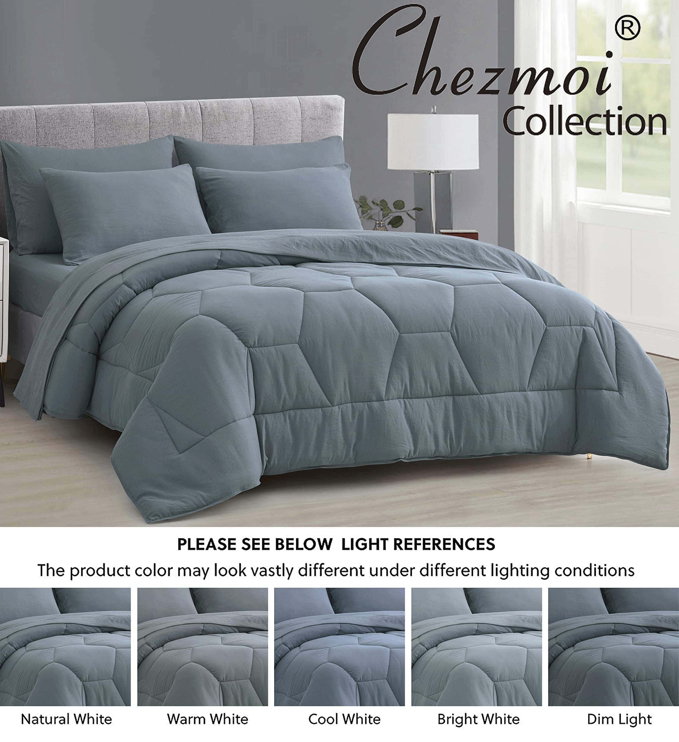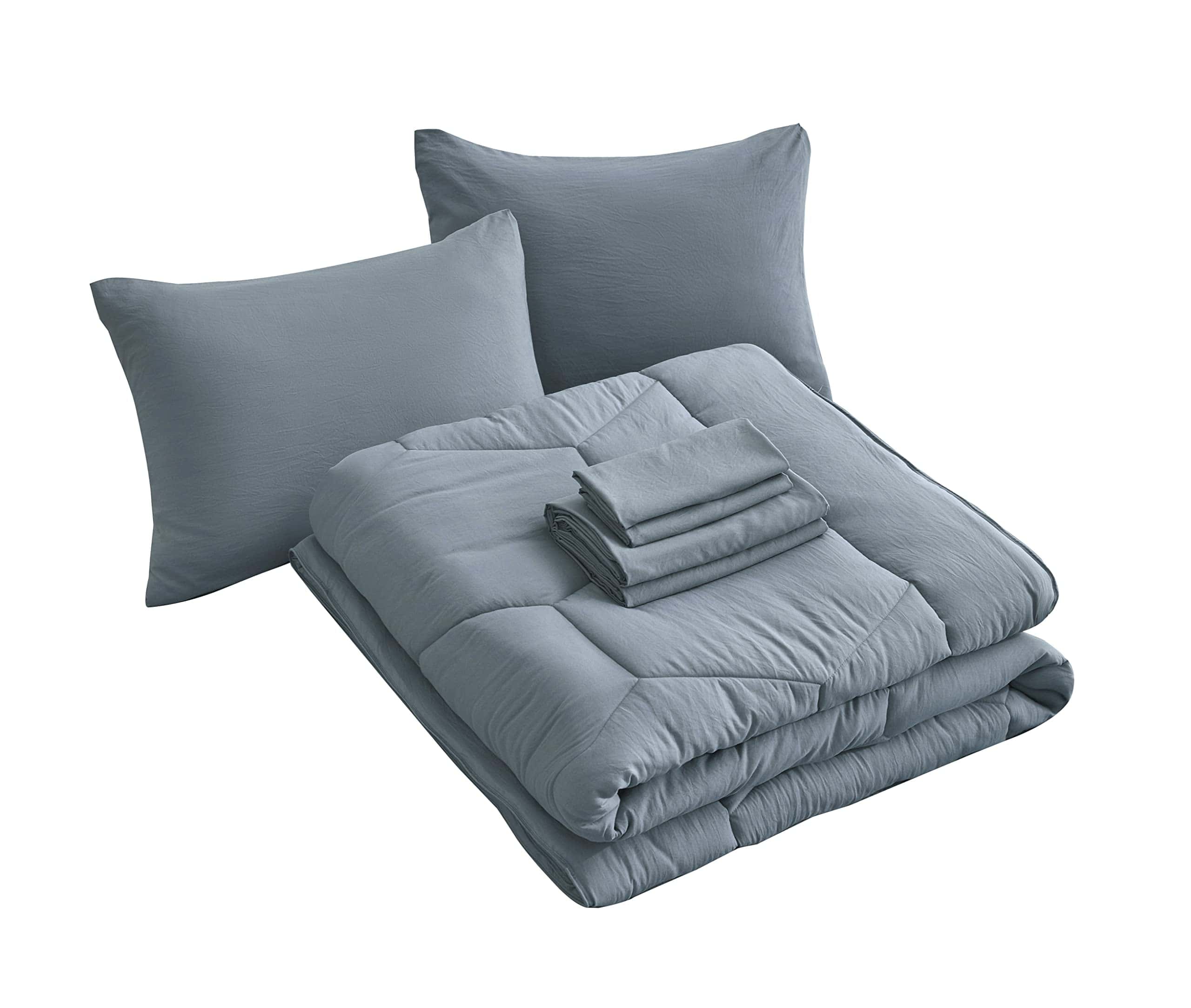 Incluido con fundas de almohada de color sólido, fundas de almohada, sábana encimera y sábana ajustable para completar tu cama con un toque elegante. Un estilo moderno y contemporáneo para refrescar tu habitación a la vez que proporciona comodidad diaria de forma elegante. Edredón ligero de alto loft con calor adecuado para uso durante todo el año. El edredón está hecho de 100% poliéster microfibra cepillado, brindando una sensación suave, suave y acogedora. Las sábanas se lavan con un tejido de microfibra cepillada para una sensación suave, manteniéndote cómodo durante toda la noche.