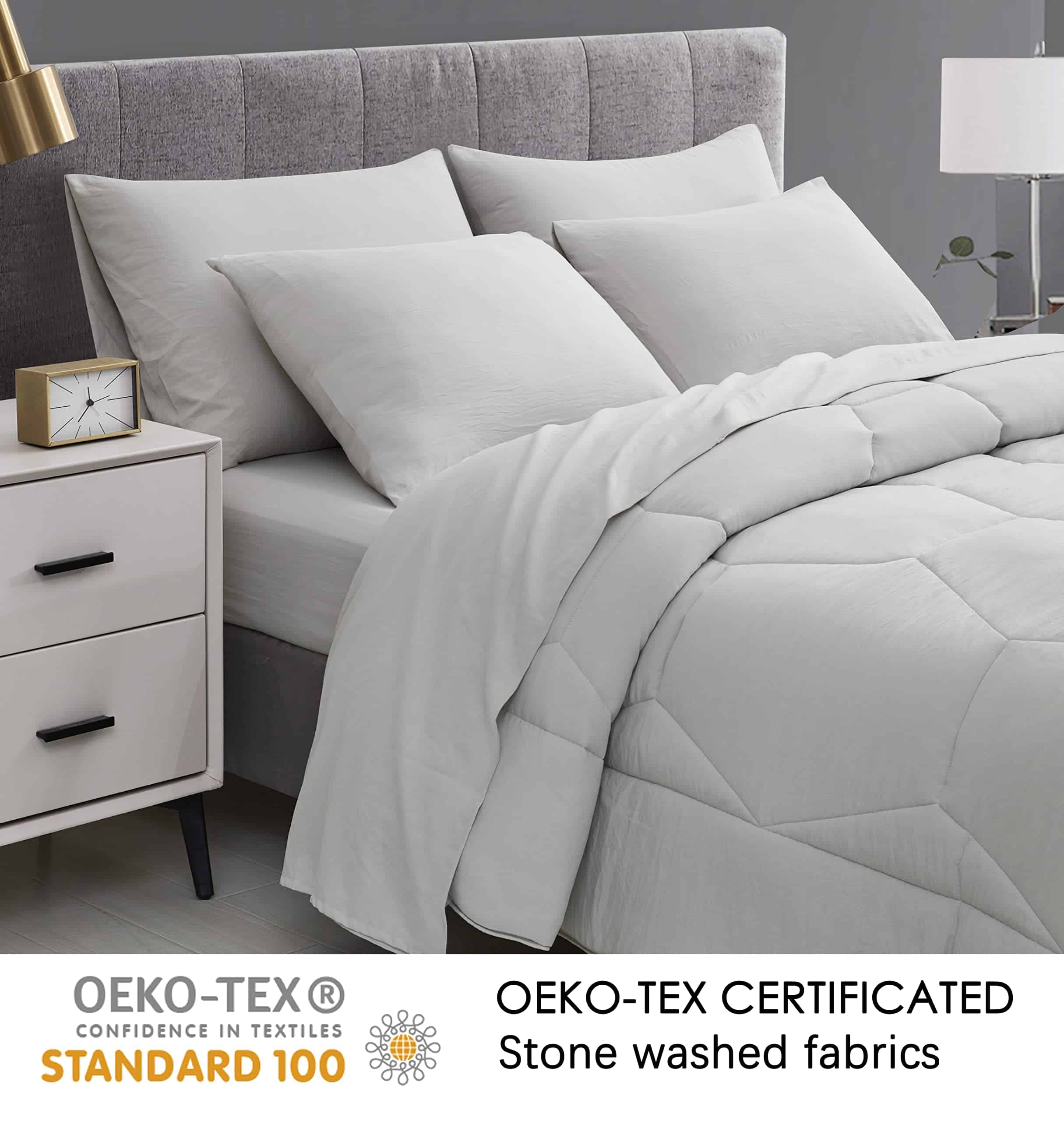 Transforma tu dormitorio de manera sofisticada y lujosa con este acogedor juego de cama con colcha. Un diseño atractivo de colcha geométrica hexagonal de miel con una presentación elegante y simple que te hace sentir como en casa. Incluye fundas de almohada y sábanas de colores sólidos, sábana plana y sábana ajustable para completar tu cama con un toque elegante. Un estilo contemporáneo moderno para refrescar tu habitación mientras proporciona confort diario de manera elegante. Colcha ligera de alto loft con calidez adecuada para uso durante todo el año. La colcha está hecha de poliéster microfibra cepillado al 100%, que proporciona una sensación súper suave y acogedora. La tela está lavada con piedra, creando un atractivo efecto de tela arrugada natural para realzar la estética de la colcha. Las sábanas están lavadas con una tela de microfibra cepillada para una sensación suave, manteniéndote cómodo durante toda la noche. Este proceso crea sábanas más fuertes y duraderas que son resistentes a la decoloración y al encogimiento con un proceso de cuidado fácil. Desde lo simple hasta lo sofisticado, dale a tu dormitorio un buen toque de elegancia sin sacrificar confort.