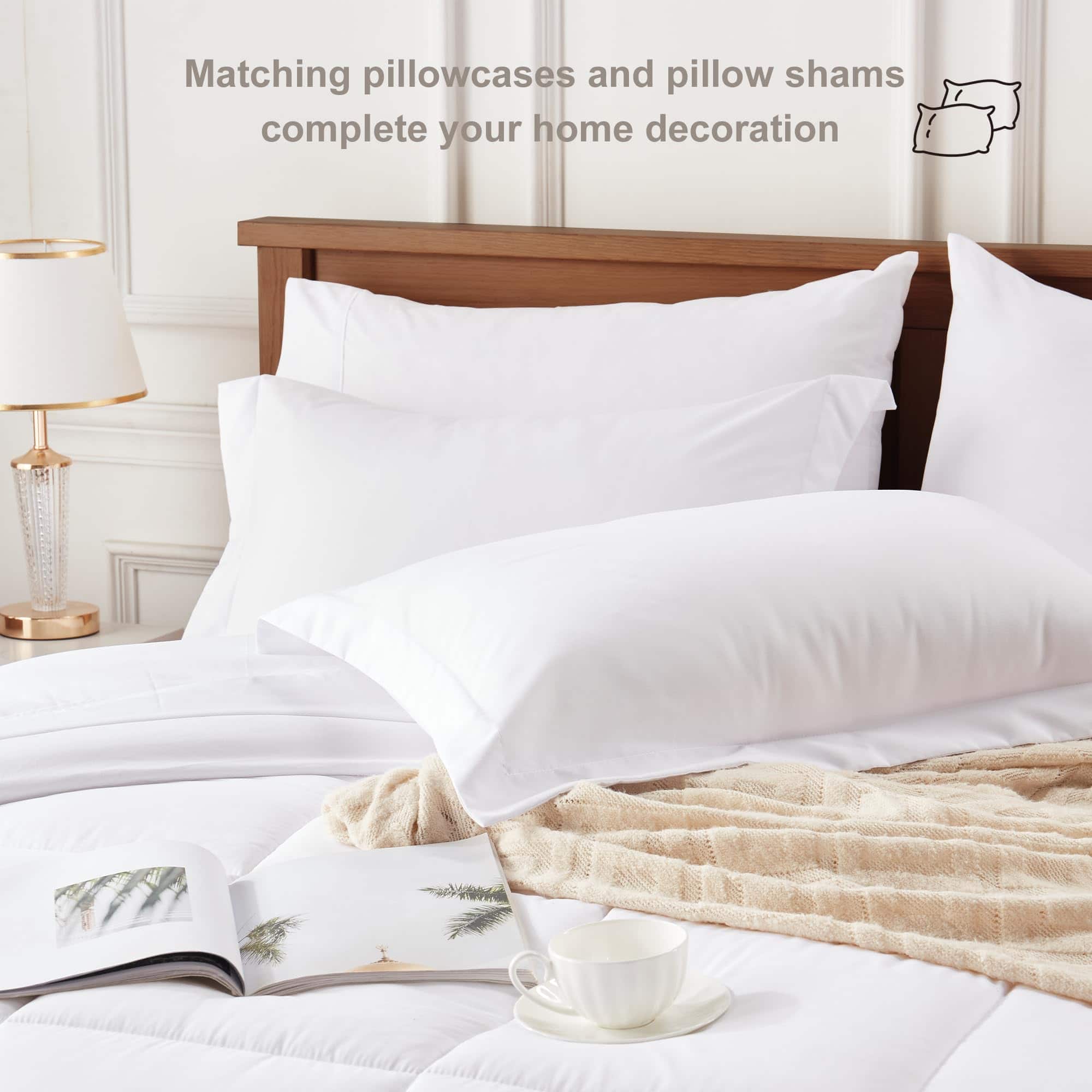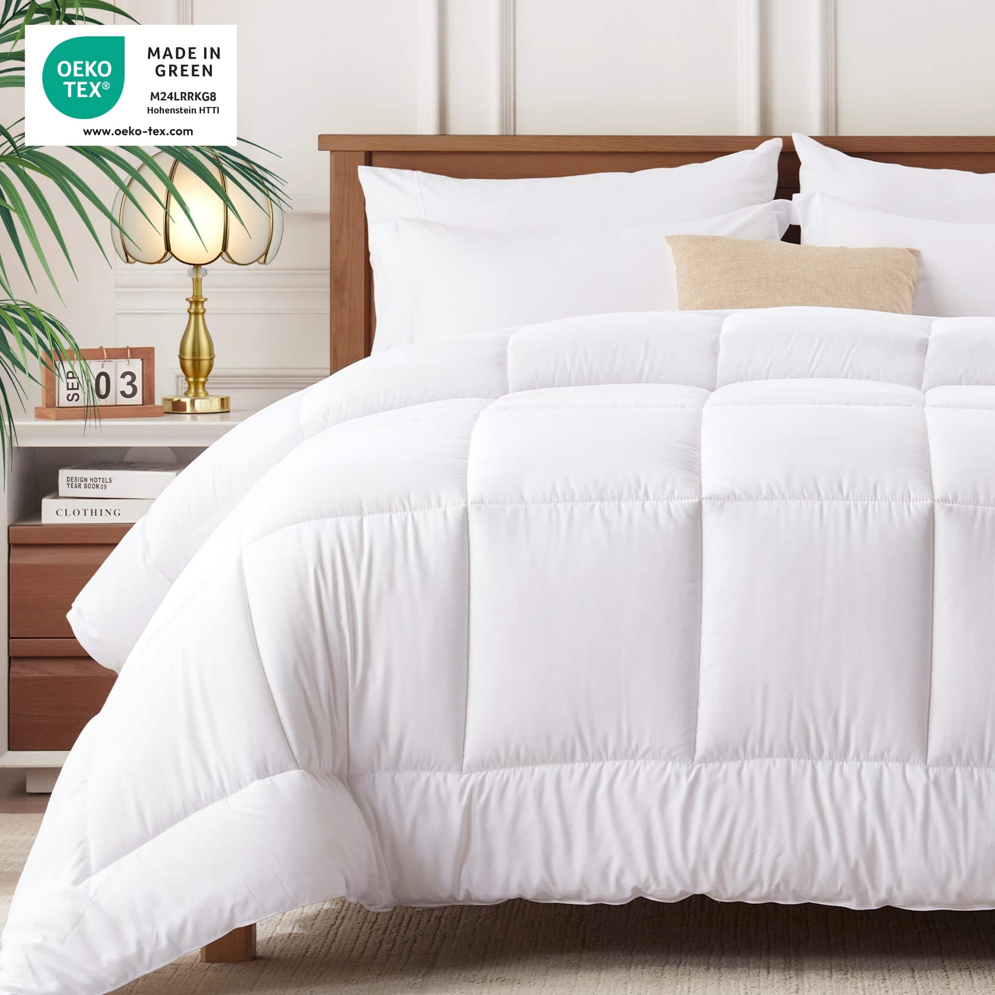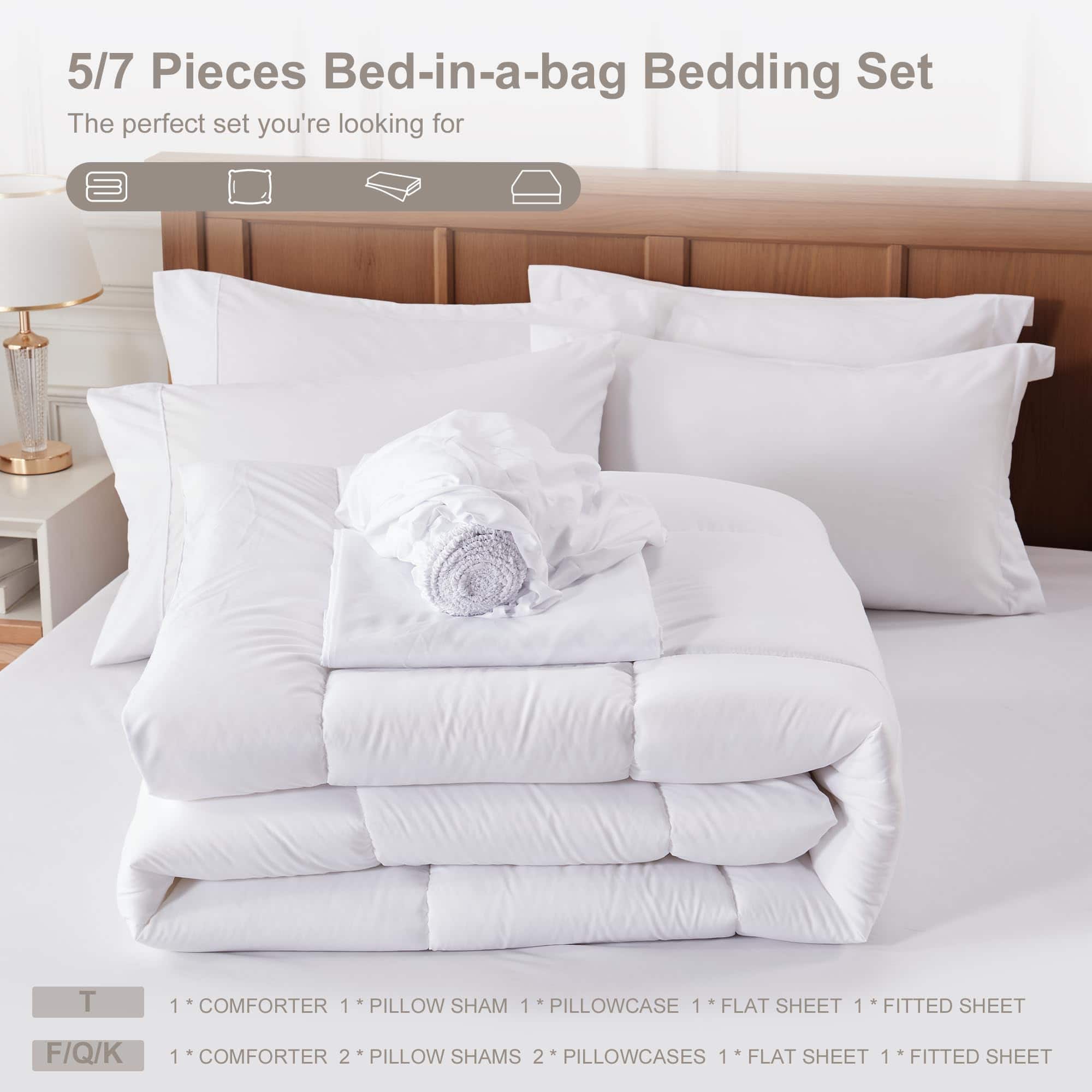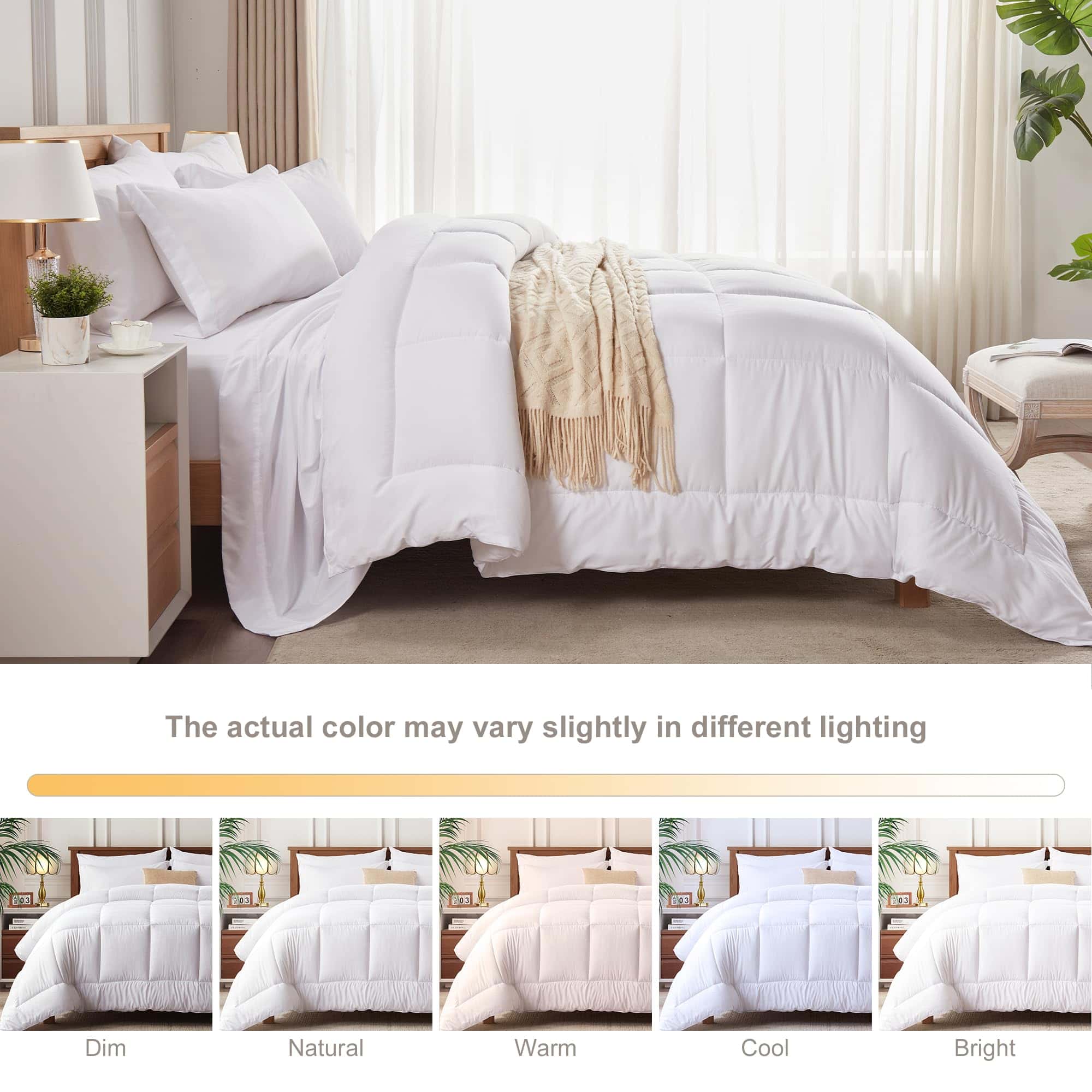 Alta calidad y seguridad certificada por OEKO-TEX. Acogedor y suave – el juego de cama completo blanco de Newspin está hecho de microfibra de alta calidad, el acolchado esponjoso de microfibra de 260GSM proporciona la cantidad justa de calor envolvente. El juego de edredón cumple con tus diversos requisitos de postura para dormir y siempre se mantiene ligero y esponjoso. La suavidad tipo nube del juego de edredón completo blanco te mantiene cómodo y cálido todas las noches en todas las estaciones. Estilizado y clásico – ¿Todavía te preocupa la combinación de la habitación El diseño clásico de puntadas en cuadros del edredón tamaño completo, acompañado de puntadas densas y uniformes, realza la apariencia de la cama y previene el desplazamiento y compactación del relleno para una durabilidad y lujo máximos. Perfecto para cualquier habitación de la casa, nuestros juegos de edredón completos están disponibles en una variedad de colores y se adaptan a cualquier estilo. El diseño de color sólido nunca pasa de moda!. Lo que puedes obtener ¡Todo lo que necesitas en un solo set! El juego de cama completo blanco de Newspin tiene 4 tamaños disponibles. El juego de edredón tamaño completo incluye: Edredón: 78″ x 90″, Sábana ajustable: 54″ x 75″, Sábana encimera: 81″ x 96″, 2 Fundas de almohada: 20″ x 30″, 2 Fundas de almohada: 20″ x 26″. Dado que nuestro juego de edredón completo viene en un embalaje sellado al vacío, se recomienda encarecidamente secarlo a fuego lento o colgar el juego de ropa de cama al sol y darle golpecitos suavemente para aumentar la esponjosidad. Perfecto para todas las estaciones Nuestra sábana ajustable con bolsillos profundos se ajusta de forma ajustada y sin esfuerzo sobre cualquier colchón de hasta 16 pulgadas, cubriéndolo firmemente sin importar cómo te retuerzas en la cama. Agrega la increíble suavidad y ligereza pero sensación esponjosa del edredón, que se ajusta cómodamente alrededor de tu cuerpo, brindándote un sueño cómodo y reparador durante todo el año. Juego de cama completo Newspin – una excelente opción como regalo de cumpleaños o de regreso a clases para adolescentes, niños, niñas, hombres o mujeres. Cuidado fácil y servicio satisfactorio – el juego de edredón tamaño completo de Newspin solo se puede lavar a máquina en agua fría, sin formación de bolitas ni decoloración, y soporta años de uso como nuevo. ¡Nuestro cómodo juego de edredón brinda un buen sueño para ti y tu familia! CONSEJO: Debido a la luz, la cámara y el monitor, puede haber ligeras diferencias de color, pero es una situación normal.