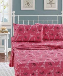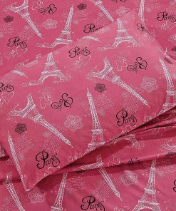 Juego de Cama de 7 Piezas Tamaño Queen para Niños/Adolescentes/Niñas con Edredón/ Ropa de Cama en un Bolso con Sábanas Floral París Torre Eiffel Flores Corazones Blanco Rosa Negro