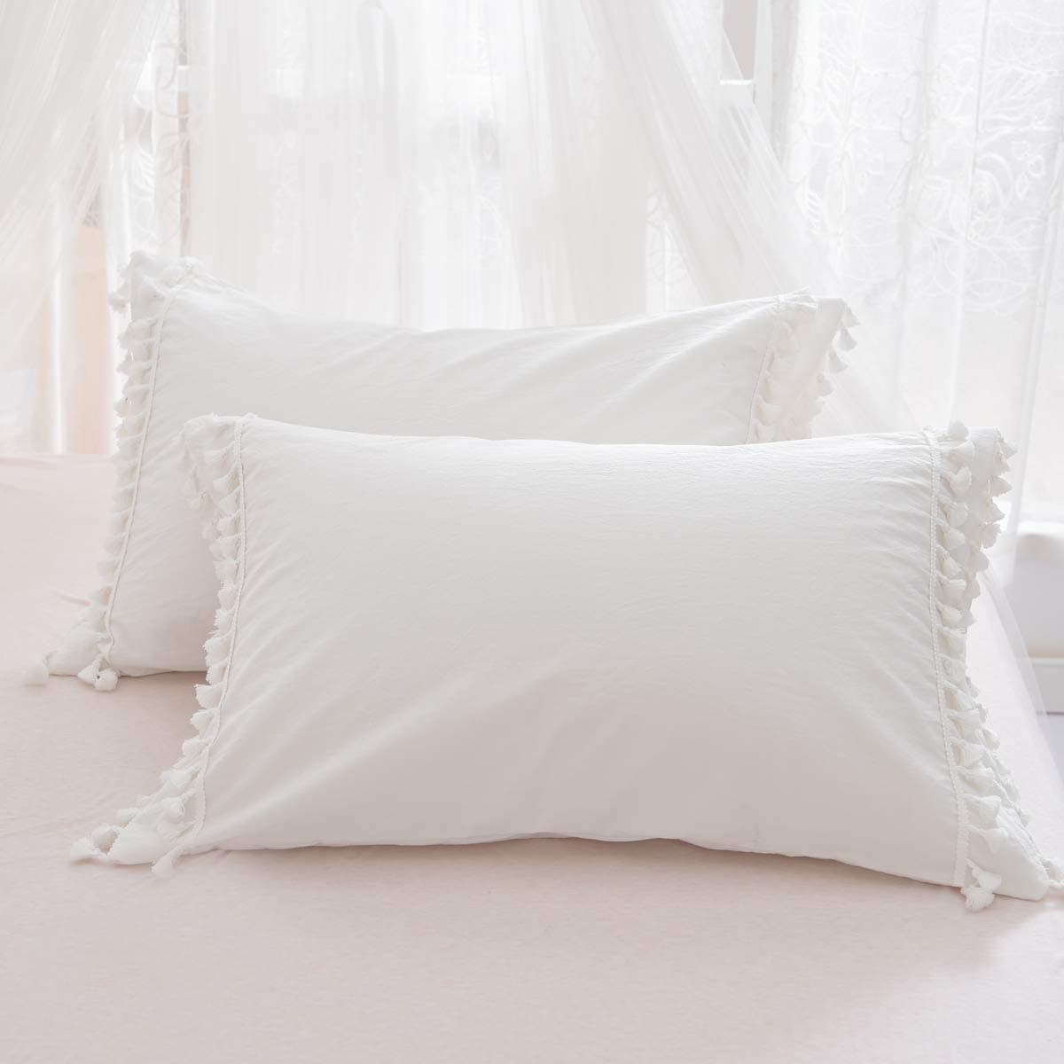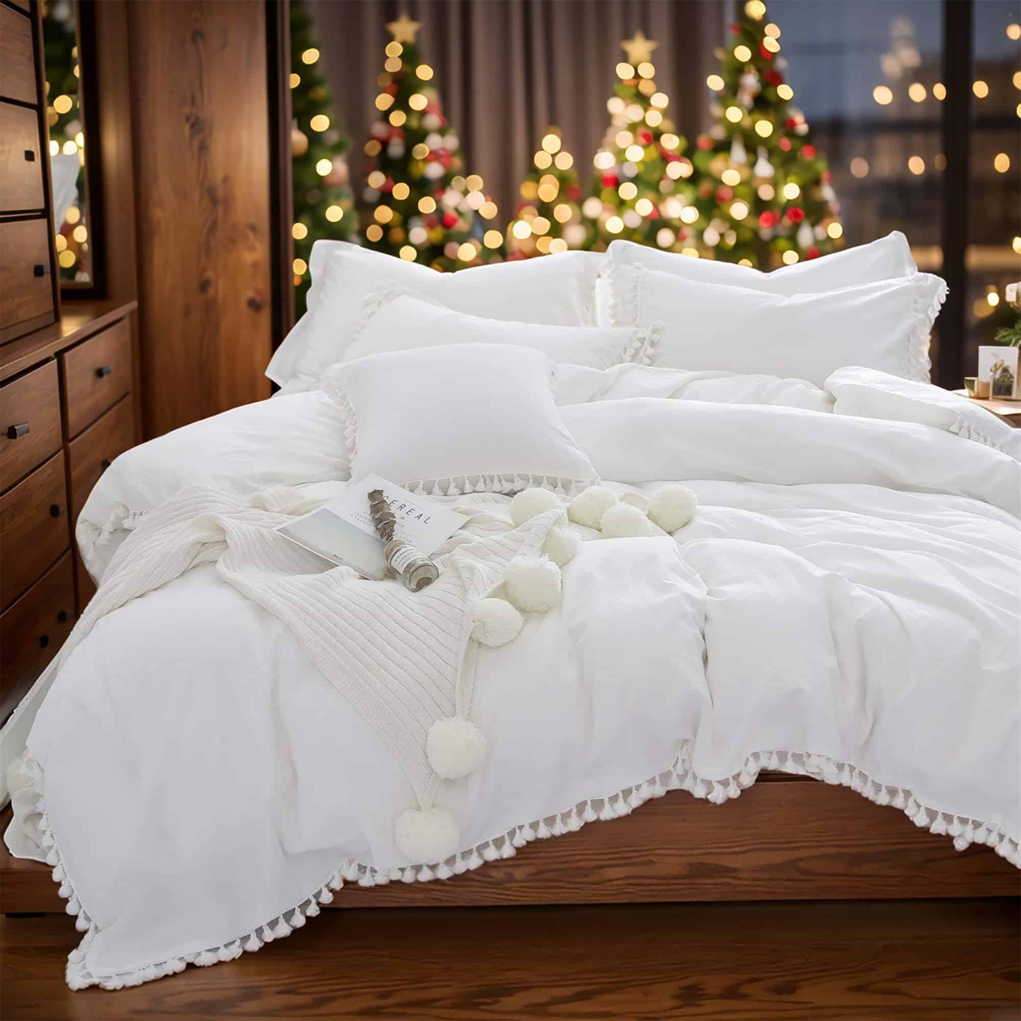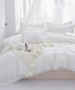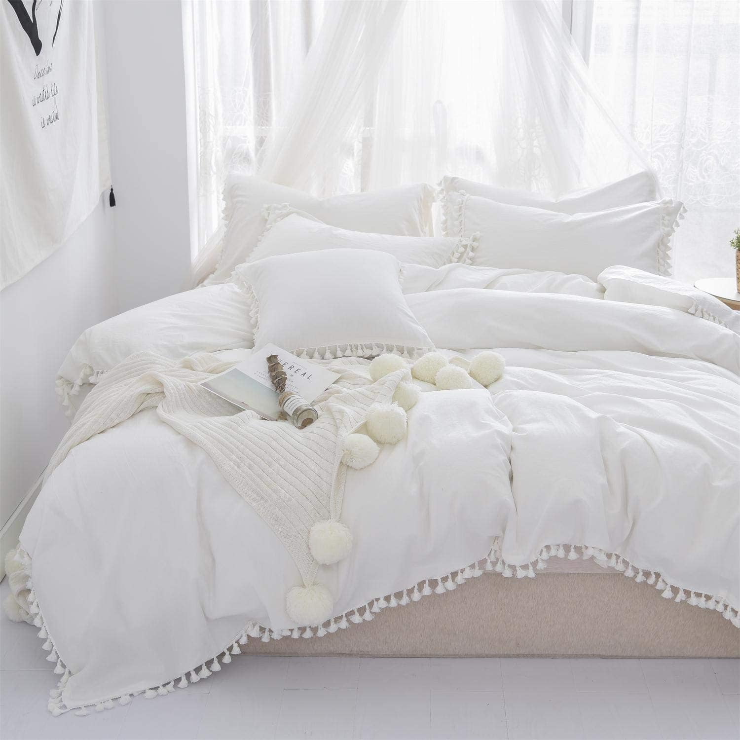 Juego de Cama de Borlas Vintage Boho Tamaño Twin 3Pcs 100%