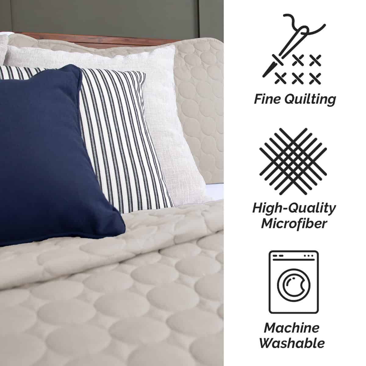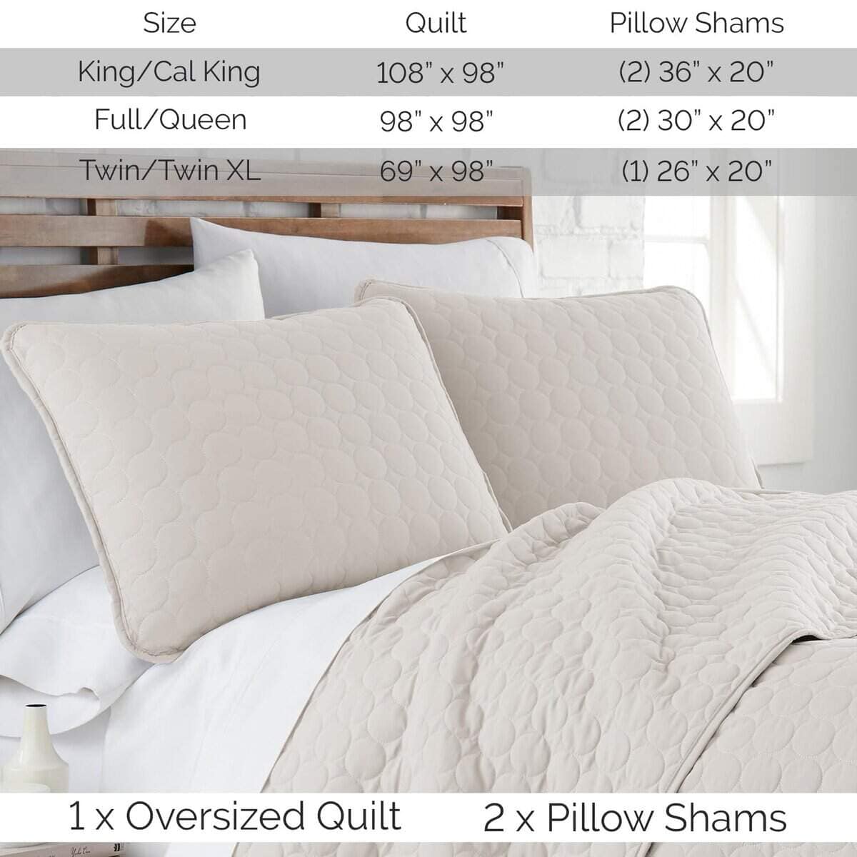 Looking to update your bedroom with a quality quilt bedding spread without spending a lot of money? Our oversized quilt sets fit the bill. These light-weight quilt bedding sets are high-quality, beautifully embroidered in circular pattern and comes with matching shams. These quilt sets are made with our signature microfiber soft fabric that is light weight, double-brushed for extra softness, shrinkage free, fade resistant. You will wake up fresh and well rested with these cozy bedding sets.