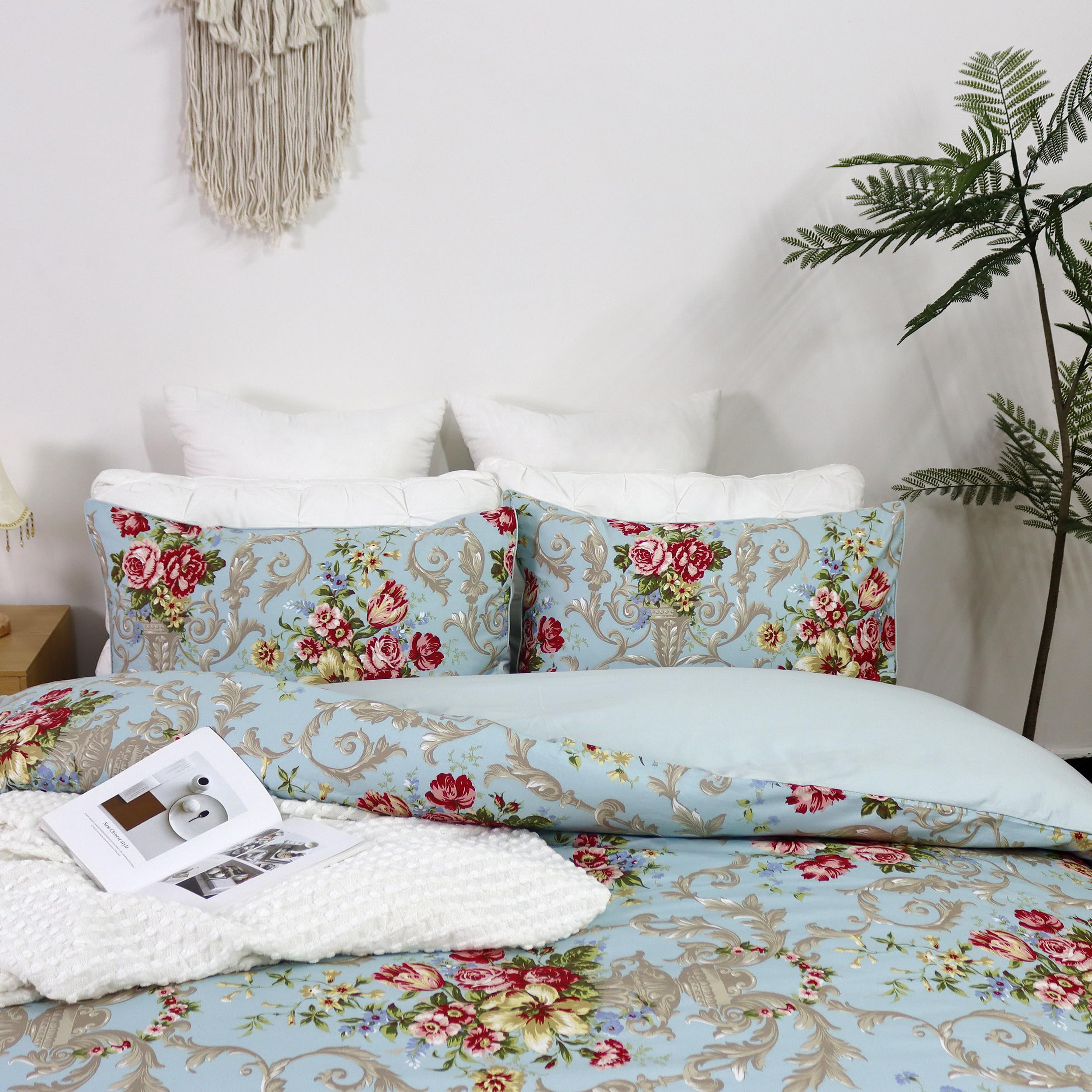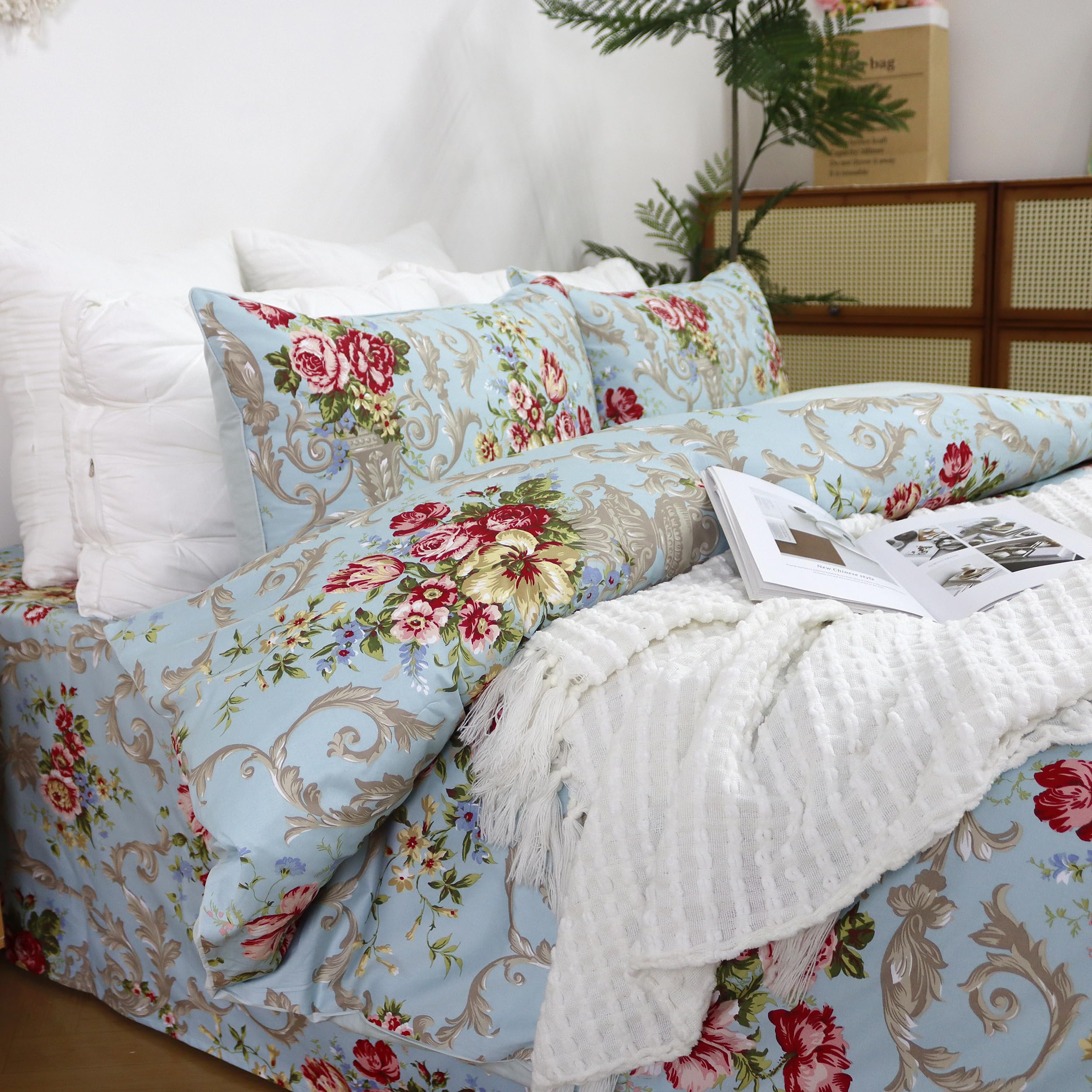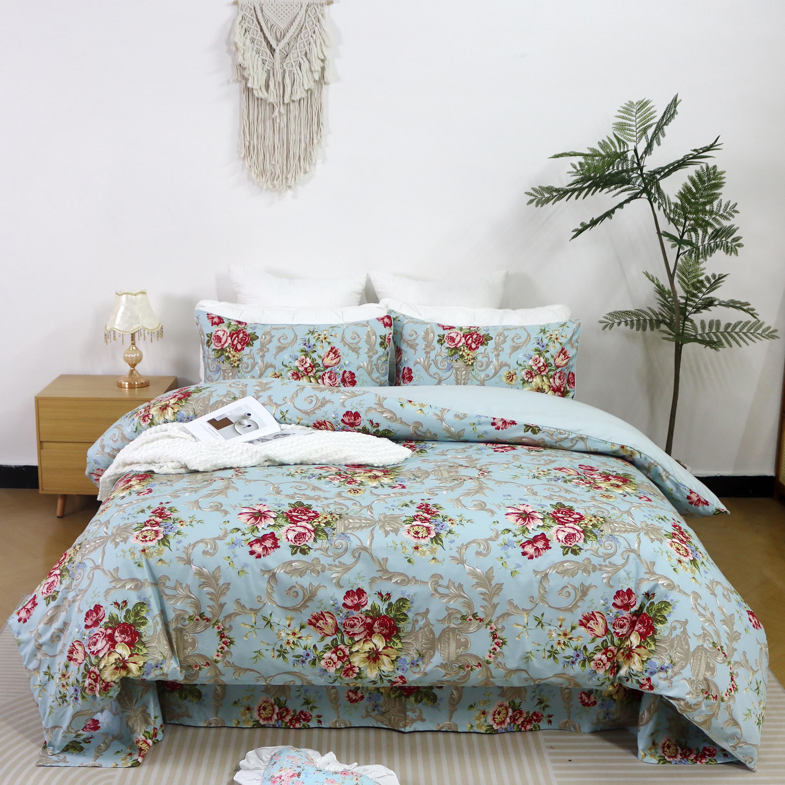 Juego de Cama de Lujo Clásico Boho Chic Shabby -Azul Peonía