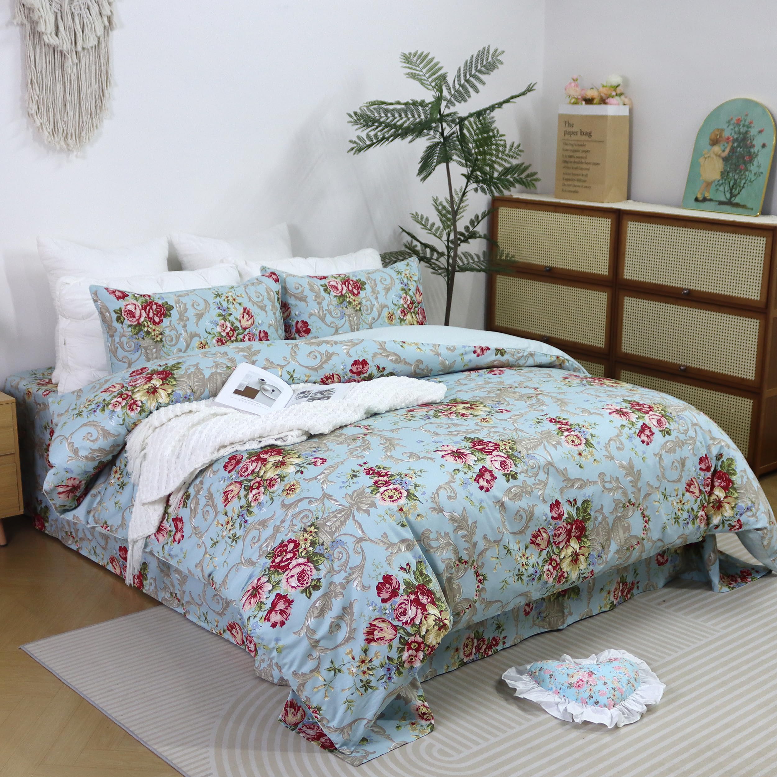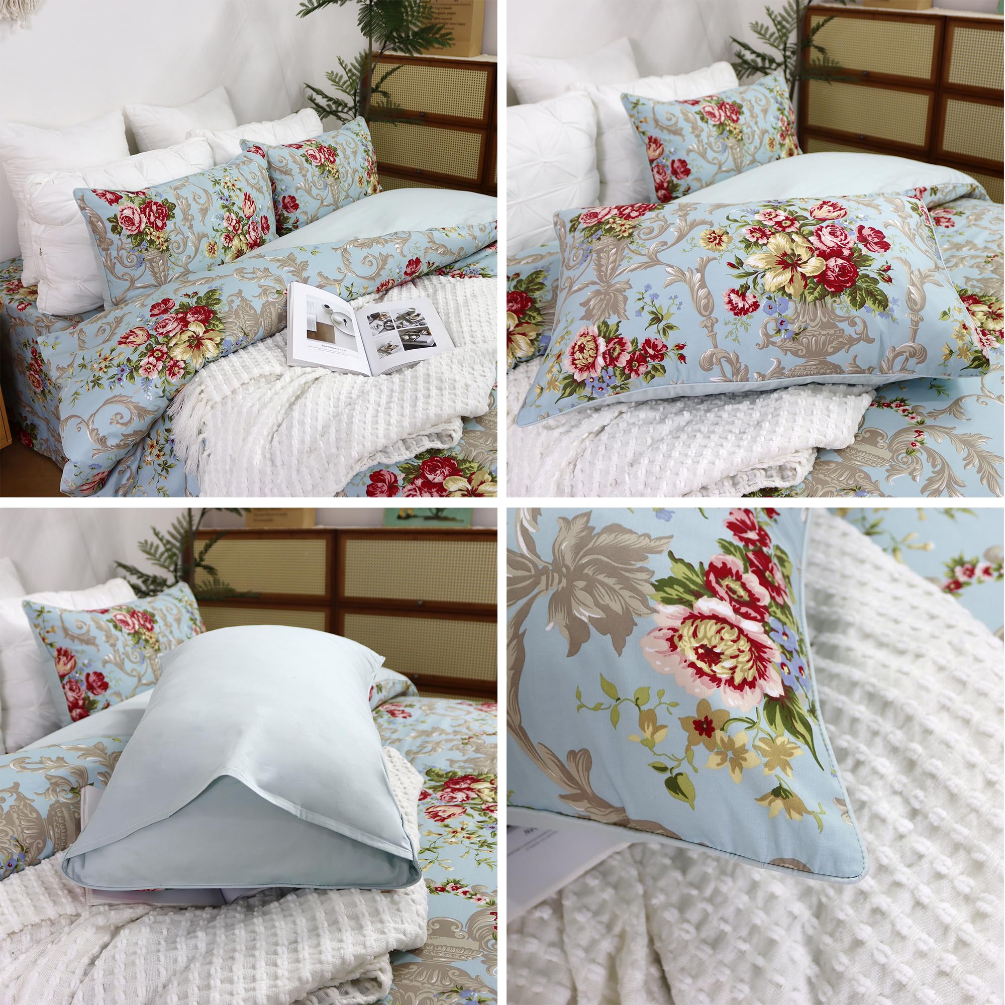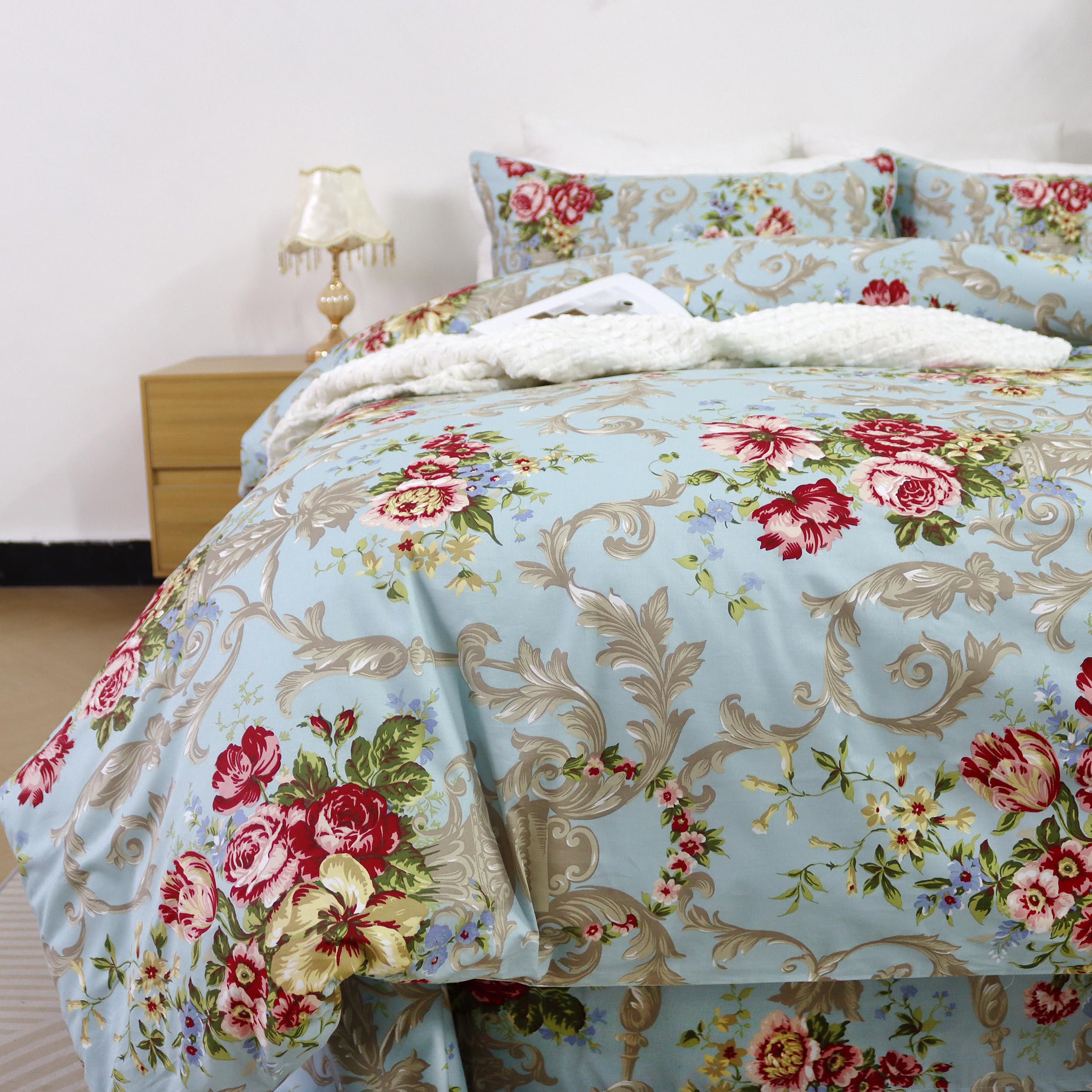 Juego de Cama de Lujo Clásico Boho Chic Shabby -Azul Peonía