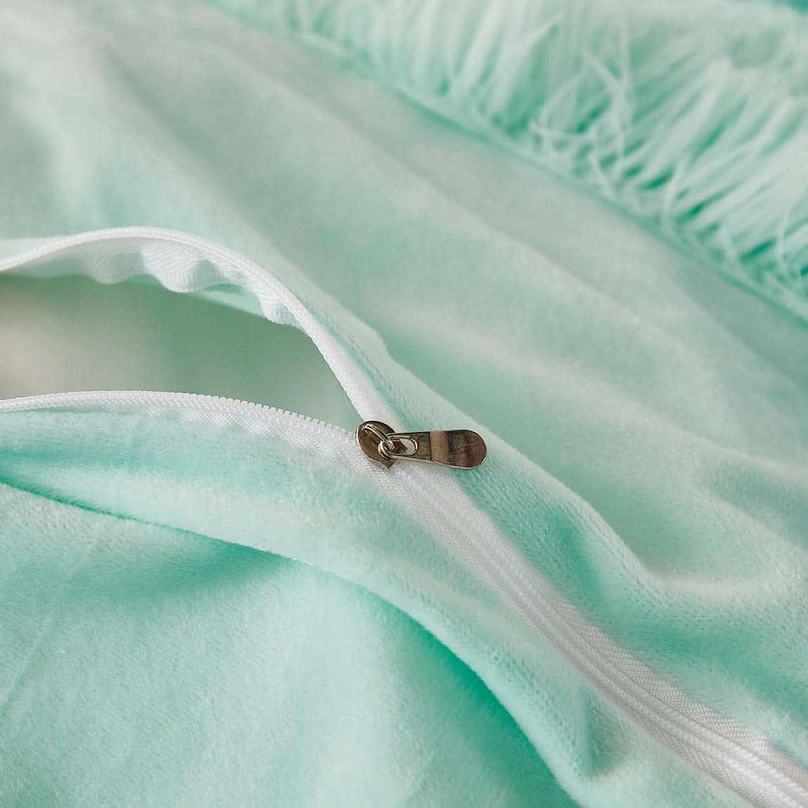 El cierre de cremallera oculto en el edredón y las fundas de almohada garantiza una apariencia limpia y sin arrugas, mientras que los lazos en las esquinas del edredón ayudan a mantenerlo en su lugar. Este juego de cama versátil te permite usar el edredón solo en los meses más cálidos y agregar un relleno en los meses más fríos para una mayor comodidad.
