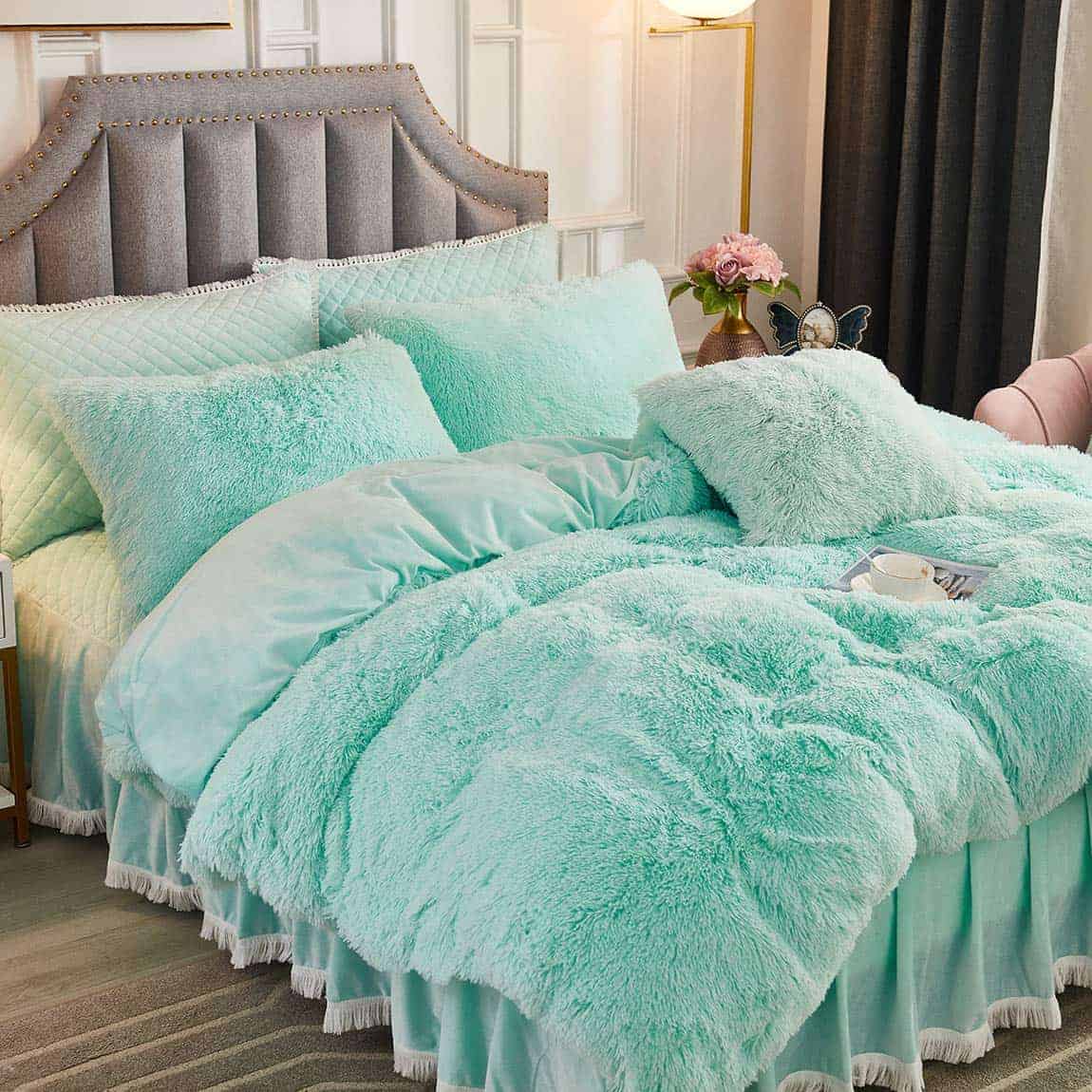 Con un servicio de satisfacción del 100%, este juego de cama es un regalo ideal para todos y es perfecto para cualquier ocasión especial. Decora tu habitación con estilo y comodidad con el juego de cama de lujo de piel sintética larga JAUXIO.