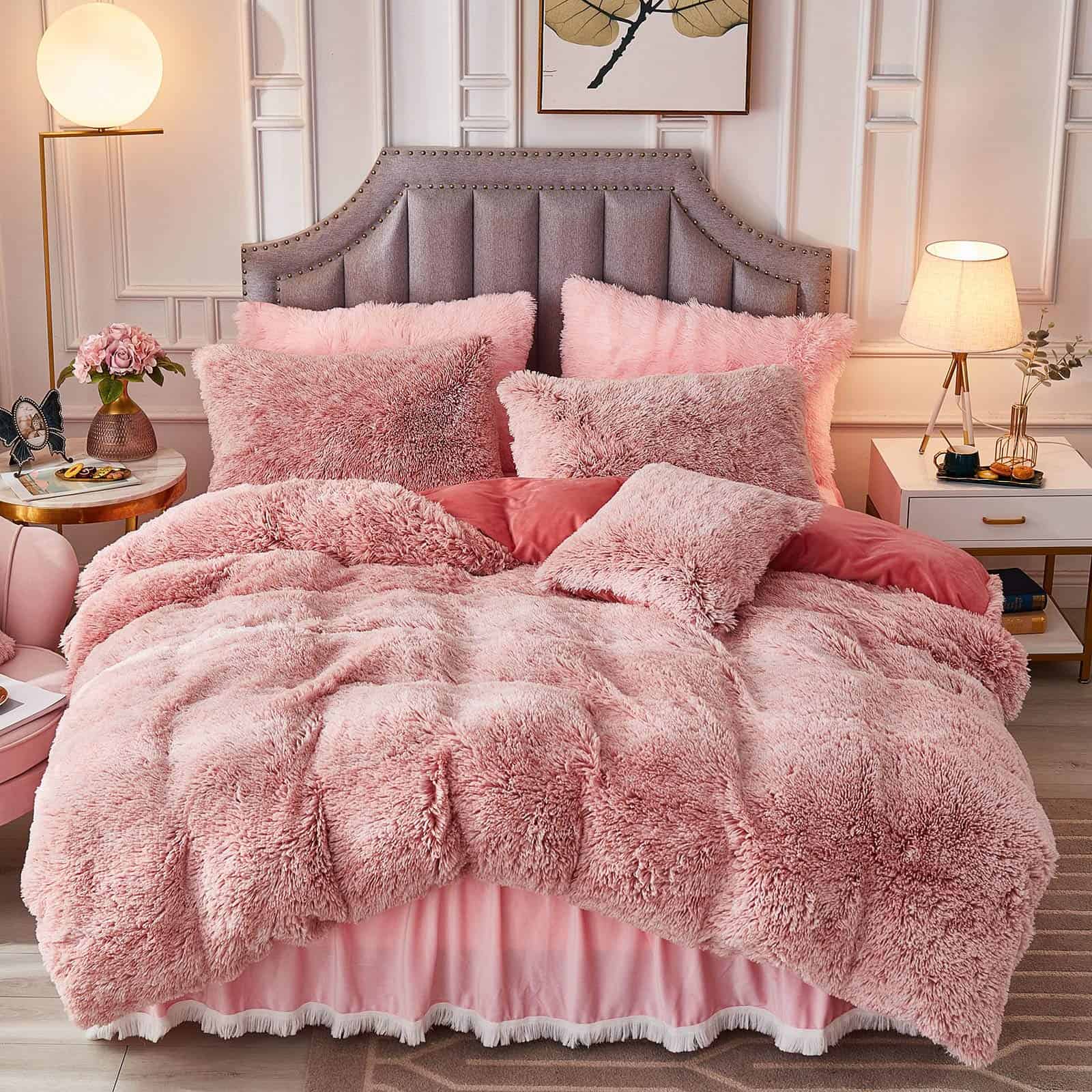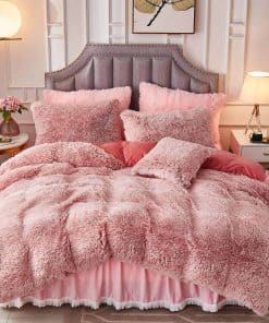 Juego de Cama de Lujo Plush de Pelo Falso Largo de 3 Piezas
