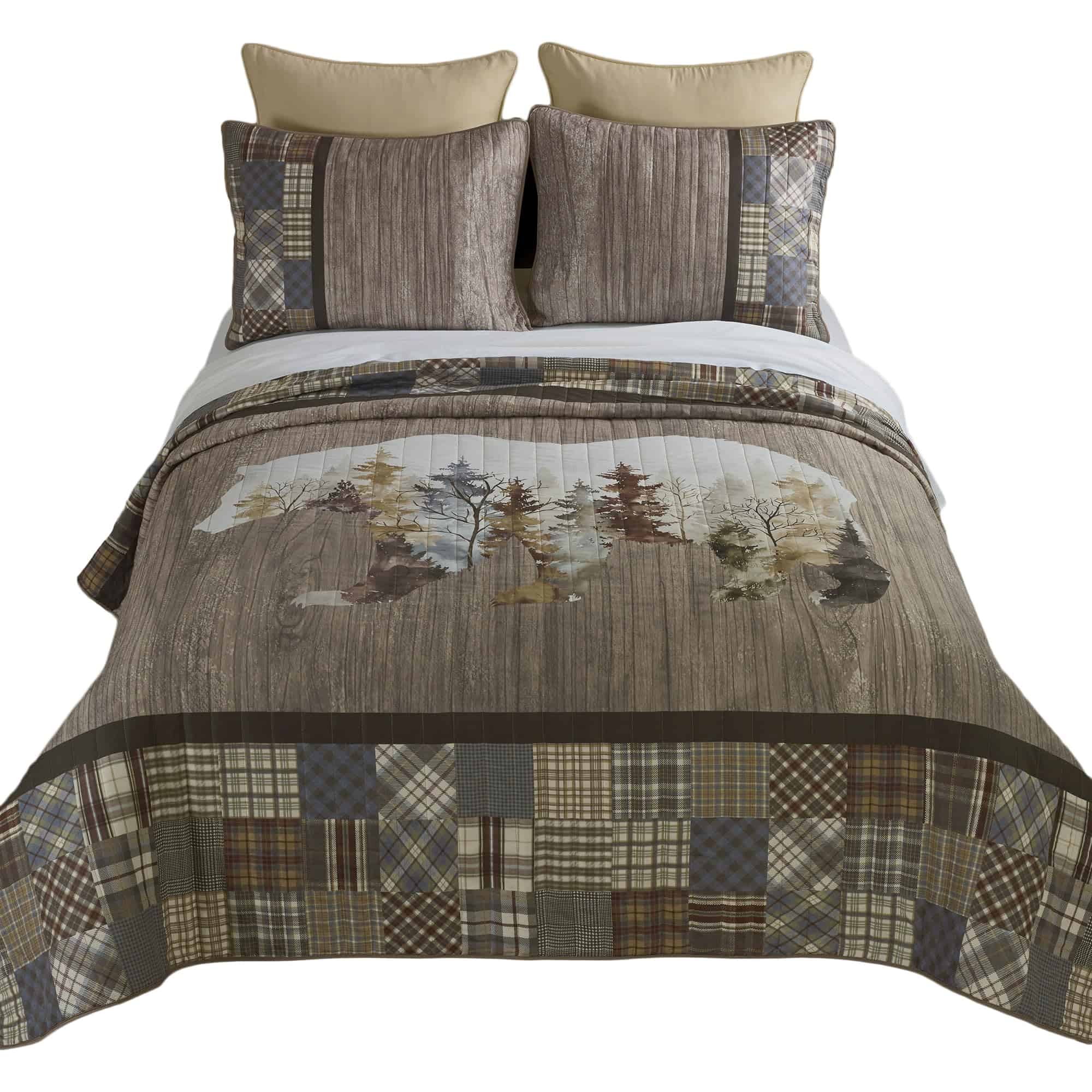 2. Este edredón en los colores marfil, taupe, azul pizarra, oro otoñal, nogal, oliva y caoba se ajusta a camas tamaño Full y Queen.
