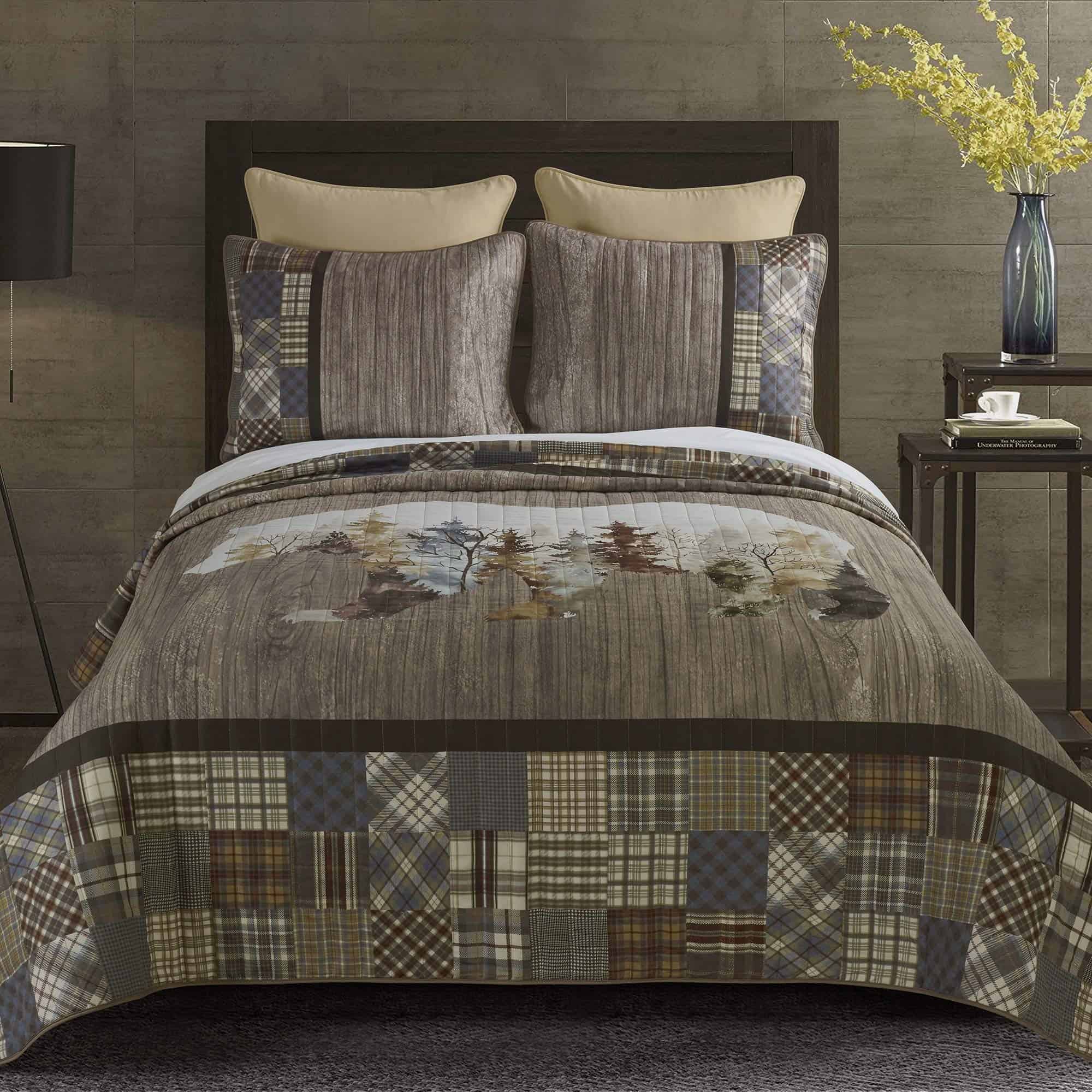 1. Juego de cama Full / Queen que incluye 1 edredón marfil, taupe, azul pizarra, oro otoñal, nogal, oliva y caoba Full/Queen 90″ x 90″ y 2 fundas de almohada estándar 20″x26″.