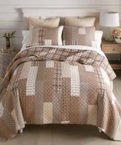El juego de cama Donna Sharp King de 3 piezas es perfecto para aquellos que buscan un toque rústico en su hogar. Con un edredón king de 110 » x 90 » y dos fundas de almohada king de 20 » x 36 », este conjunto de edredón presenta estampados clásicos de cuadros y gingham dispuestos en un patrón de rayuela, reversible a un diseño de cuadros. La cubierta del edredón está hecha de 50% algodón y el relleno es 50% poliéster, lo que lo hace cómodo y fácil de cuidar. Este juego de cama es ideal para cabañas, casas junto al lago, casas de montaña, cabañas o lodges. ¡Coordina con nuestra colección de ropa de cama a juego para completar el look de tu dormitorio!