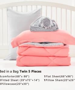 5. Lo Que Obtienes: El juego de cama en una bolsa de tamaño twin incluye 1 Edredón 68″x88″, 1 Funda de Almohada 20″x26″, 1 Sábana Plana 66″x96″, 1 Sábana Ajustable 39″x75″+14″, 1 Funda de Almohada 20″x30″