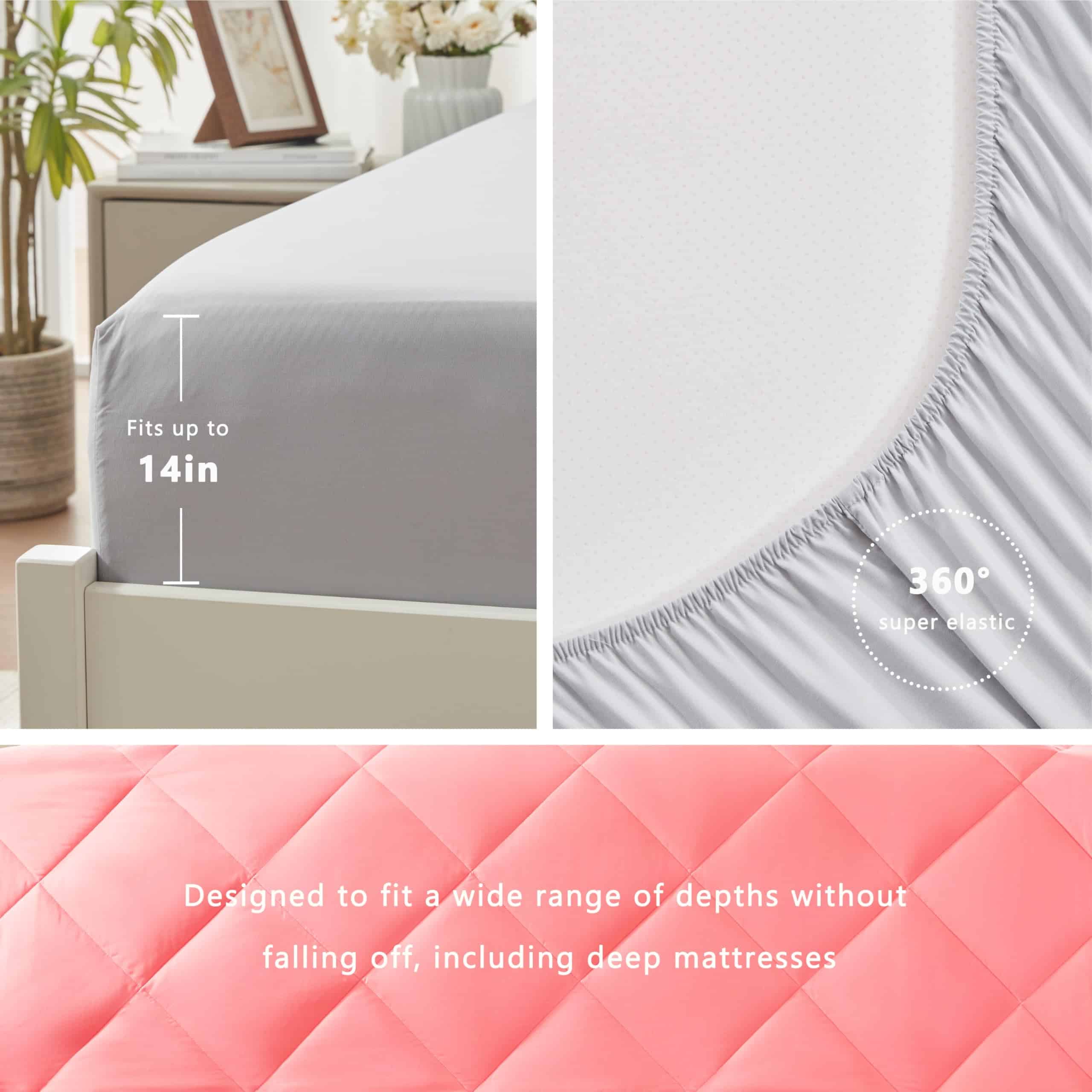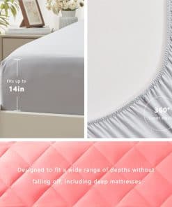 2. Diseño Ponderado: La sábana ajustable con elástico de bolsillo profundo se adapta a colchones de hasta 14″-16″ de grosor, asegurando un ajuste seguro sin importar el movimiento durante el sueño. Además, el edredón exhibe un pespunte duradero tipo caja para una apariencia elegante y sencilla mientras mantiene la estabilidad en su relleno.