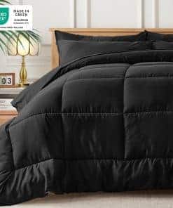 ¡Llévate todo lo que necesitas en un paquete con el juego de cama Newspin Twin en Bolsa! Este juego de ropa de cama ultra suave de 5 piezas en negro está certificado por OEKO-TEX para garantizar su alta calidad y seguridad, libre de sustancias nocivas. La microfibra de alta calidad y el relleno de microfibra de 260GSM proporcionan la cantidad justa de calidez y comodidad, adaptándose a tus distintas posturas para dormir y manteniéndose siempre ligero y esponjoso. El diseño clásico de acolchado en cuadros del edredón twin, junto con un acolchado denso y uniforme, realza la apariencia de la cama y evita que el relleno se desplace y se agrupe para una máxima durabilidad y lujo. Este set incluye un edredón, una sábana bajera, una sábana encimera, una funda de almohada y una funda de almohada. Nuestro juego de cama en tamaño twin viene envasado al vacío, por lo que se recomienda secarlo a baja temperatura o colgarlo al sol y golpearlo suavemente para obtener más esponjosidad. La sábana ajustable con bolsillos profundos se ajusta perfectamente en cualquier colchón de hasta 16 pulgadas y se complementa con la suavidad y ligereza del edredón, que se ajusta perfectamente alrededor de tu cuerpo, brindándote un sueño cómodo y reparador durante todo el año. Además, se puede lavar a máquina en frío sin que se formen bolitas ni se decolore, manteniéndose como nuevo después de años de uso. ¡El juego de cama Newspin Twin en Bolsa es una excelente opción como regalo de cumpleaños o de regreso a clases para adolescentes, niños, niñas, hombres o mujeres! TIP: Debido a la luz, la cámara y el monitor, puede haber ligeras diferencias de color, pero es una situación normal.