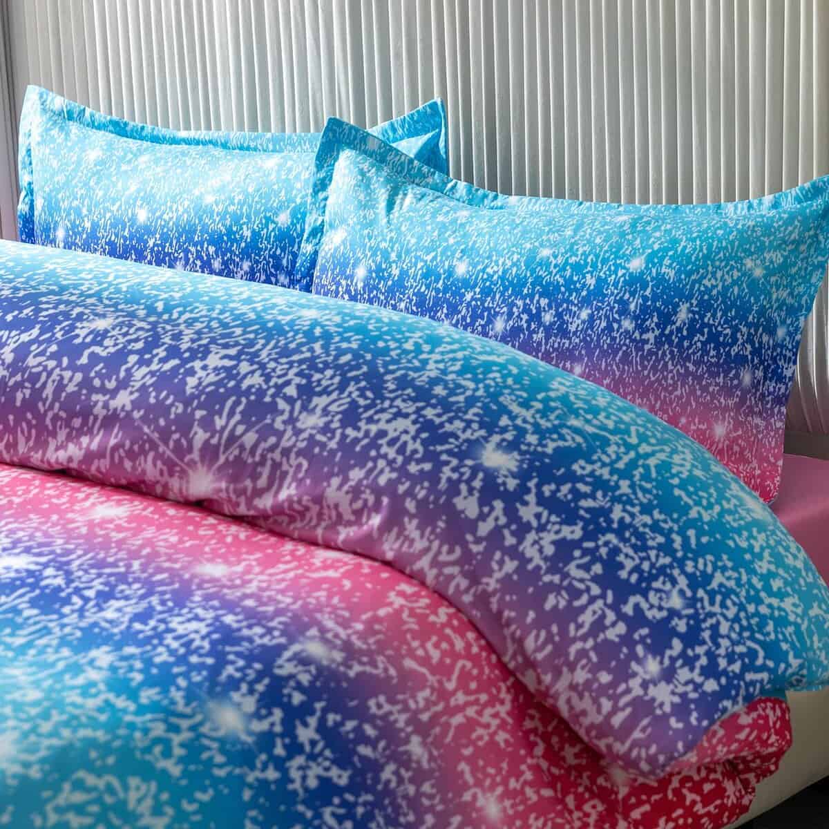 2. Diseño único: La Funda de Edredón de Tamaño Individual en Colorido Conforter utiliza la última tecnología de impresión 3D para crear un diseño llamativo. Nuestra Funda de Edredón Conforter está impresa con un patrón de gradiente de galaxia rosa brillante, haciendo que tu dormitorio sea más cálido y romántico.