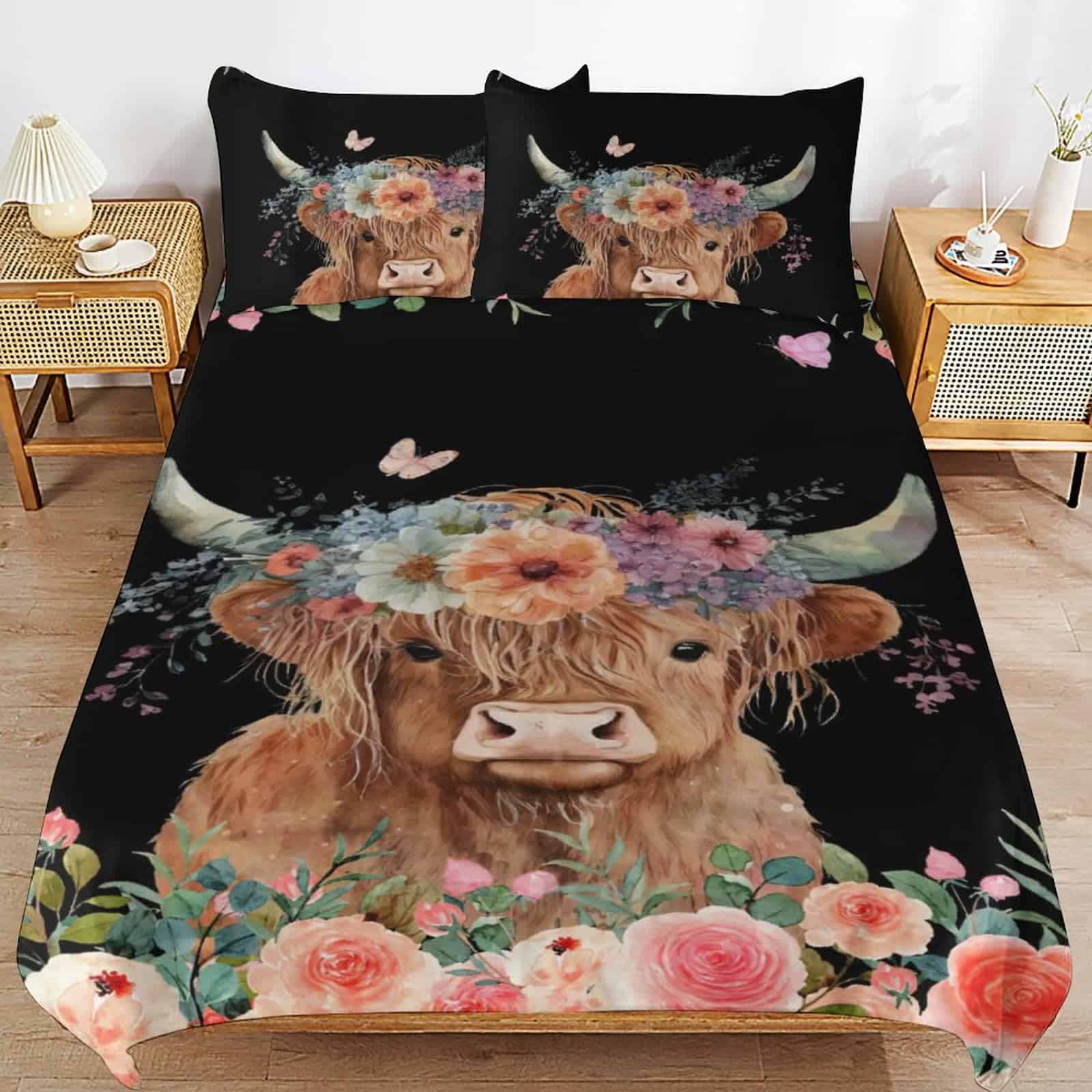 Juego de Cama Twin Highland Cow Farmhouse para Adolescentes