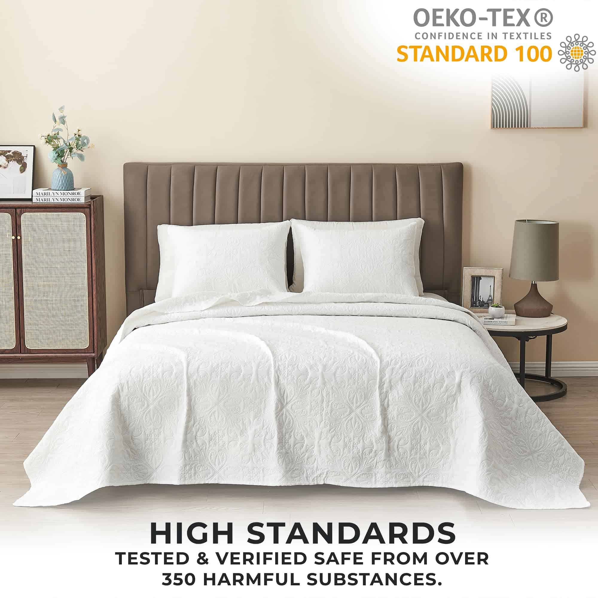 Este juego de cama ultraligero extragrande presenta un relleno duradero de poliéster que te mantendrá cómodo durante toda la temporada. Este cobertor está diseñado para uso durante todas las estaciones, pero la sensación ligera es perfecta para el verano. Lavable a máquina en agua caliente, secar en secadora a baja temperatura, planchar a temperatura media si es necesario. Material duradero y de alta calidad diseñado para un uso y disfrute duradero. La satisfacción del cliente es de suma importancia para nosotros. Estamos seguros de que te encantarán nuestros juegos de cama y otros productos de ropa de cama, pero si no estás satisfecho, nuestro equipo de servicio al cliente trabajará contigo para solucionarlo. ¡Encuentra tu combinación de ropa de cama perfecta en una de nuestras colecciones!