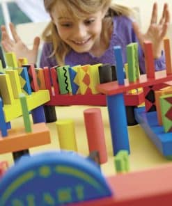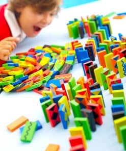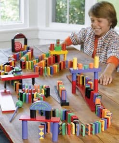 Temporada tras temporada, a nuestros clientes les ha encantado este superventas Juego de Carrera de Dominó de Madera Clásico, una actividad clásica que todas las edades pueden disfrutar juntas. Con colores actualizados, patrones añadidos y algunos desafíos nuevos y geniales, este juego de dominó de madera será la actividad perfecta para una noche de juegos en familia o una reunión con amigos. ¡Simplemente organiza los dominós en un patrón serpenteante, luego inclina el primer dominó (o haz rodar la bola de madera incluida por la rampa) para iniciar una reacción en cadena! El set contiene 255 piezas de madera (incluyendo set de pirámide y set de escaleras/puente).